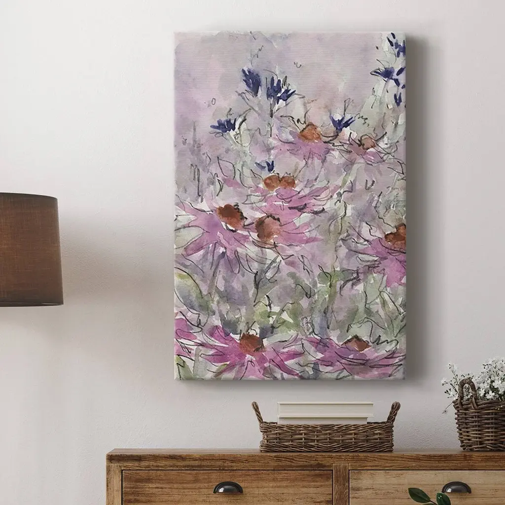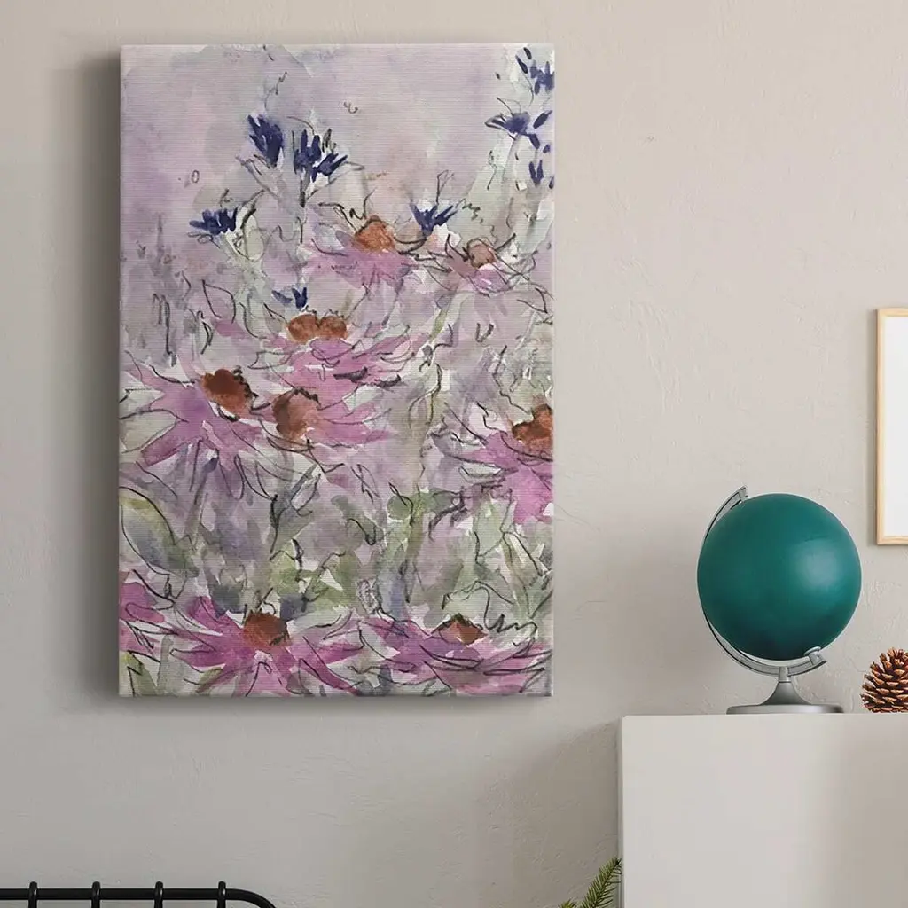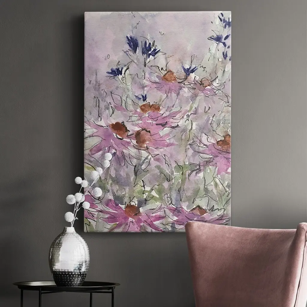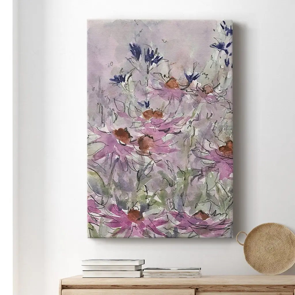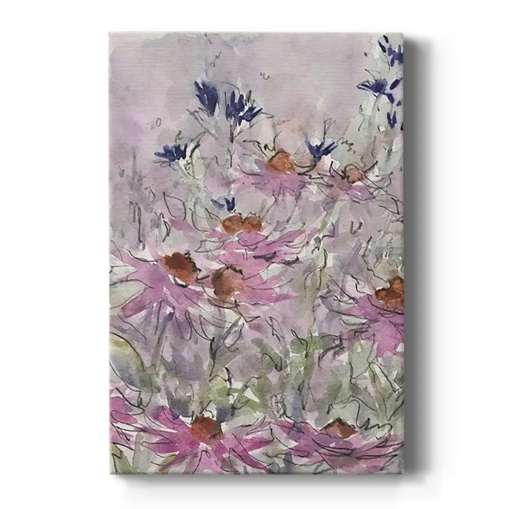 Floral Entertainment II Premium Gallery Wrapped Canvas - Ready to Hang A premium hand stretched gallery wrapped canvas print created to last. Featuring a beveled a solid wood stretcher bar, each piece comes ready to hand 6 SIZES AVAILABLE 8''X12'' - Overall Size 12''X18'' - Overall Size 18''X27'' - Overall Size 24''x36'' - Overall Size 32''x48'' - Overall Size 40''x60'' - Overall Size Each piece is made to order. Built to Last Each piece comes ready to hang Solid wood stretcher Fade and Water resistant Made domestically