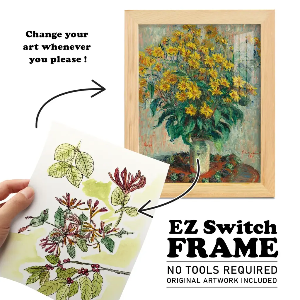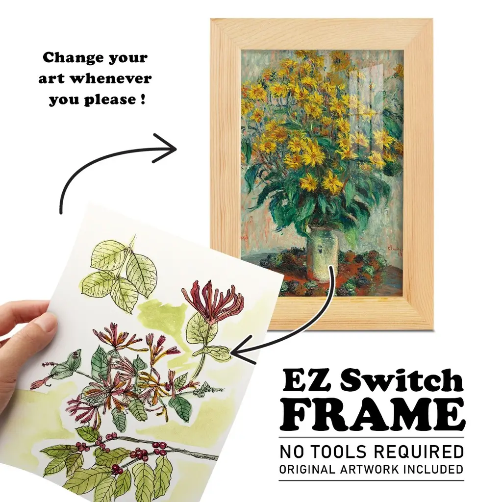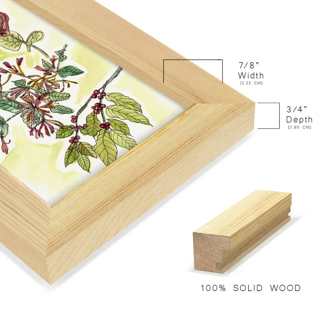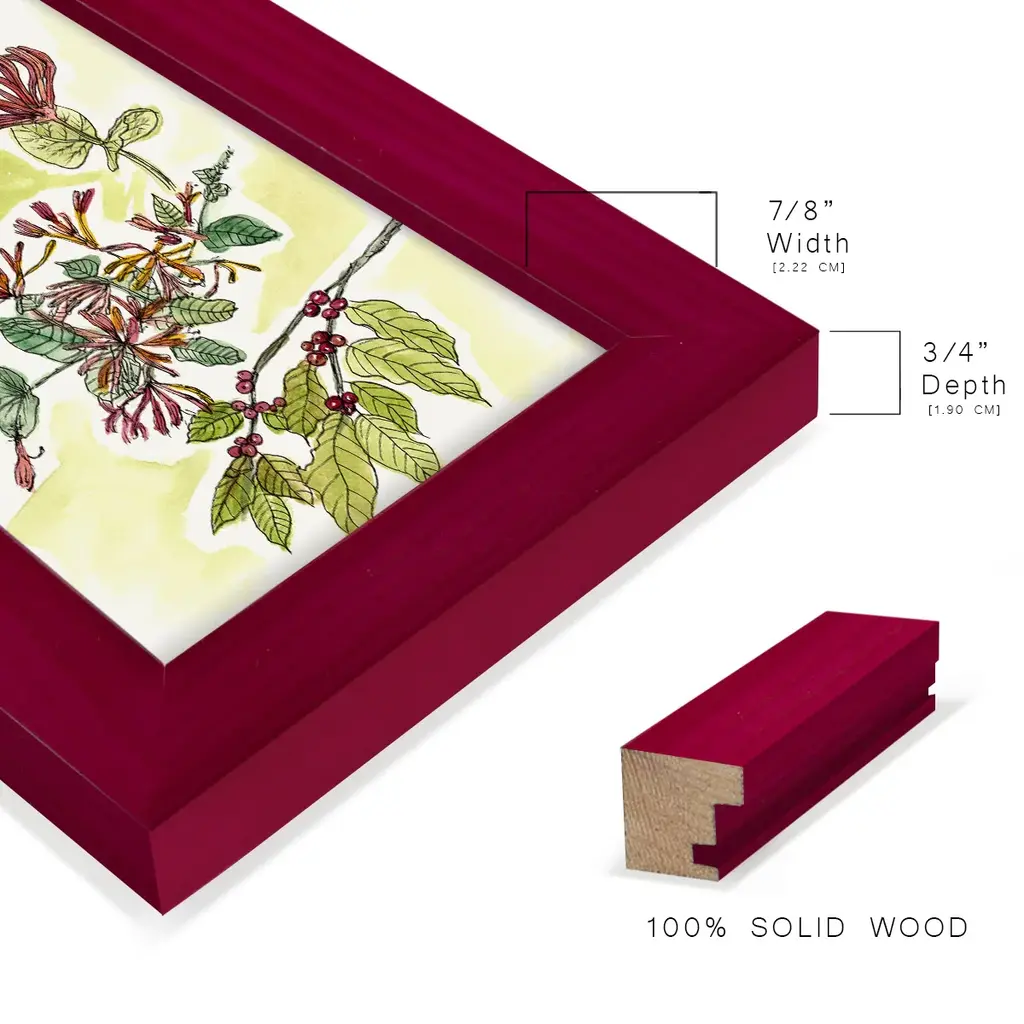 Floral Field Notes IV -EZ SWITCH Framed Print w/glass-Cherry Red A delightful, framed print. Featuring a solid wood frame with real wood glass. This premium print is giclee quality. In addition, every frame features a removable back and table top stand. This allows you to change your art in the future or to just stand the art on a table for a new look. We are sure you'll enjoy our new series of EZ SWITCH Framed Art. Solid Wood Frame Real Glass Removable / Replaceable Art Built in Tabletop Stand Sizes range from 4x6 up to 12x15 - buy just one or pair them up as sets as you see fit.