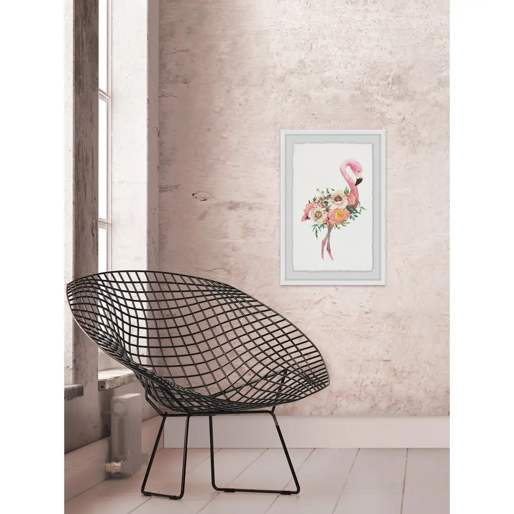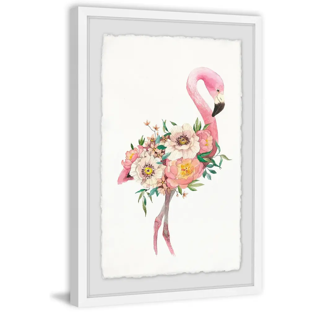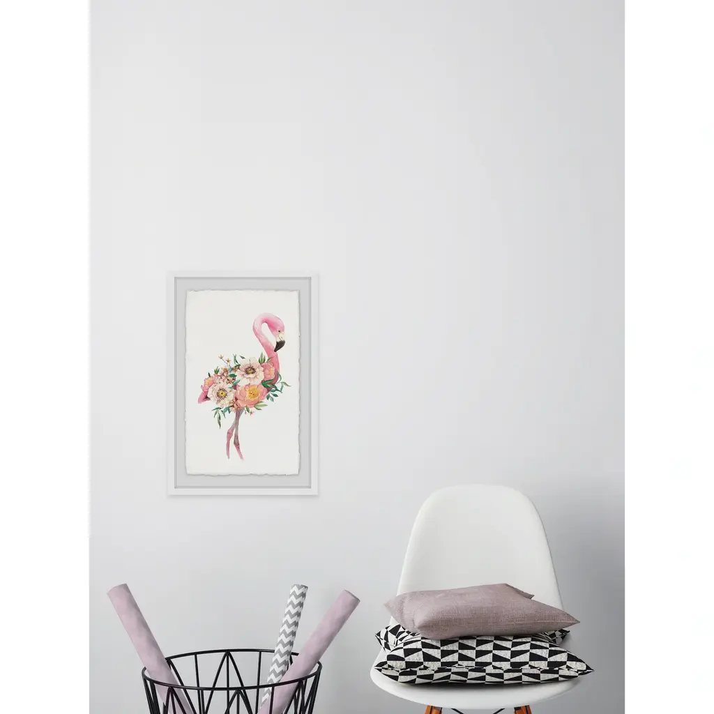 'Floral Flamingo' Framed Painting Print - Multi-Color - 12 X 18