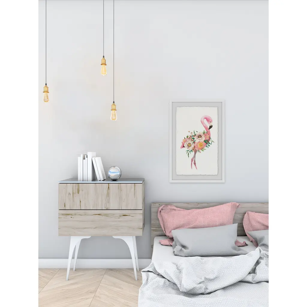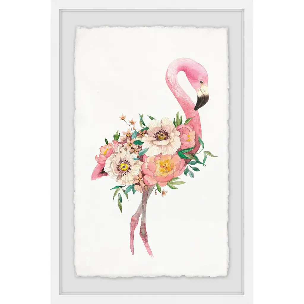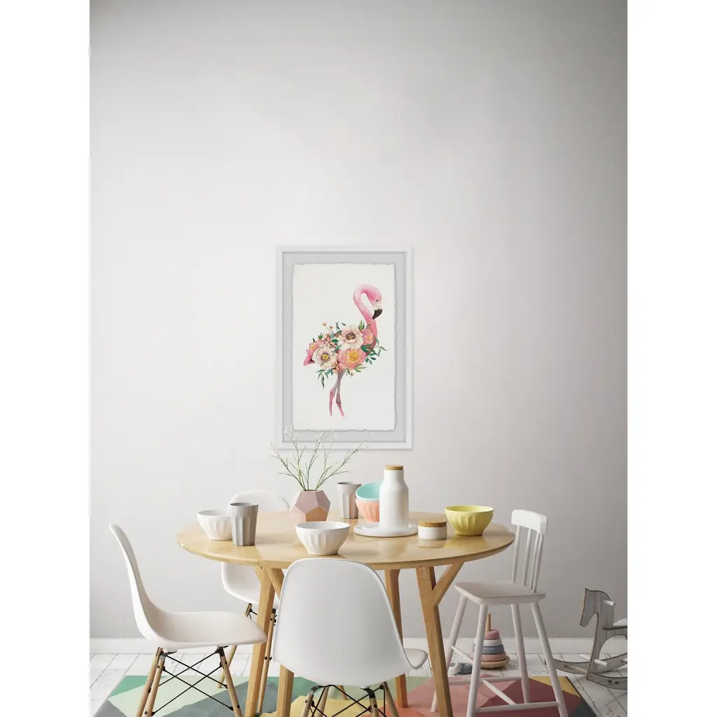 'Floral Flamingo' Framed Painting Print - Multi-Color - 12 X 18