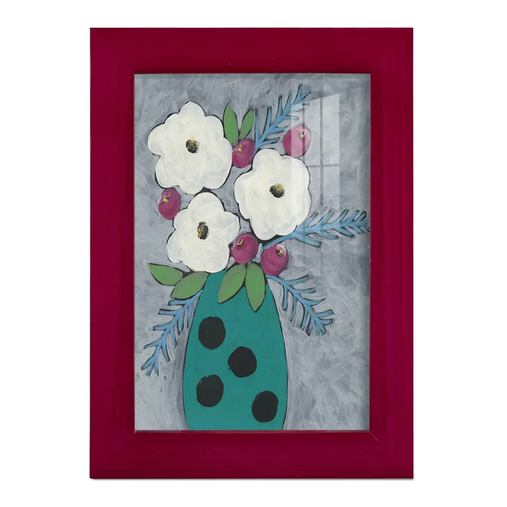 Floral Frolic Ii -Framed Print W/glass-Cherry Red - 4X6 - Blue