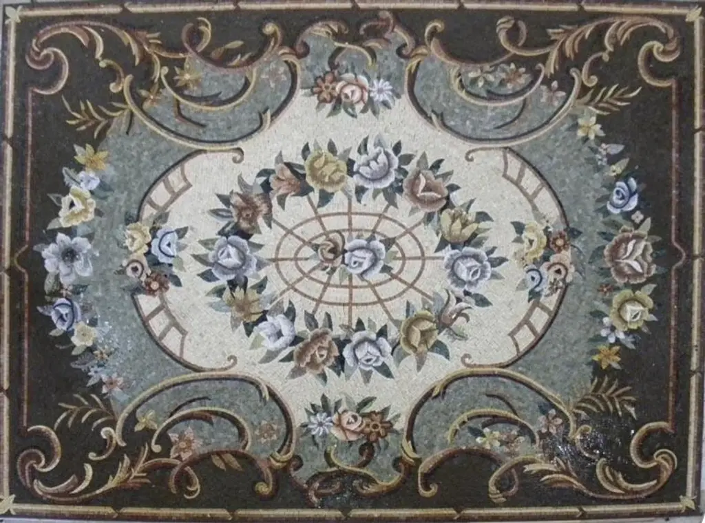 Introducing our Floral Geometric Handmade Mosaic, a stunning blend of artistry and nature that will elevate the aesthetic of any space in your home. Crafted with meticulous care, this exquisite piece features a unique combination of all-natural stones and artistic tiles, showcasing the exceptional skill and creativity of our talented artisans.Each mosaic is a testament to the beauty of craftsmanship, with a vibrant palette of colors meticulously selected to create a captivating floral and geometric design. The intricate patterns not only serve as a focal point in your room but also harmonize seamlessly with various decor styles, making it a versatile addition to your home.What sets our Floral Geometric Handmade Mosaic apart is its customization options. Whether you prefer a specific size to fit perfectly in your entryway, dining area, or bathroom, or have a particular color scheme in mind to complement your existing decor, we are here to make your vision come to life. This personalized touch ensures that your mosaic is not just a decoration, but a reflection of your unique style.Designed for floor installation, this mosaic combines durability with elegance. The natural stones are not only beautiful but also resilient, allowing your artwork to withstand everyday wear while maintaining its stunning appearance. Imagine stepping onto a masterpiece that brings warmth and joy to your home every day.Transform your living space with the Floral Geometric Handmade Mosaic. It’s more than just a decorative piece; it’s an artistic expression that tells a story and adds character to your surroundings. Embrace the beauty of handmade art and let your home reflect your personal style with this one-of-a-kind mosaic. Order yours today and experience the allure of handcrafted excellence.