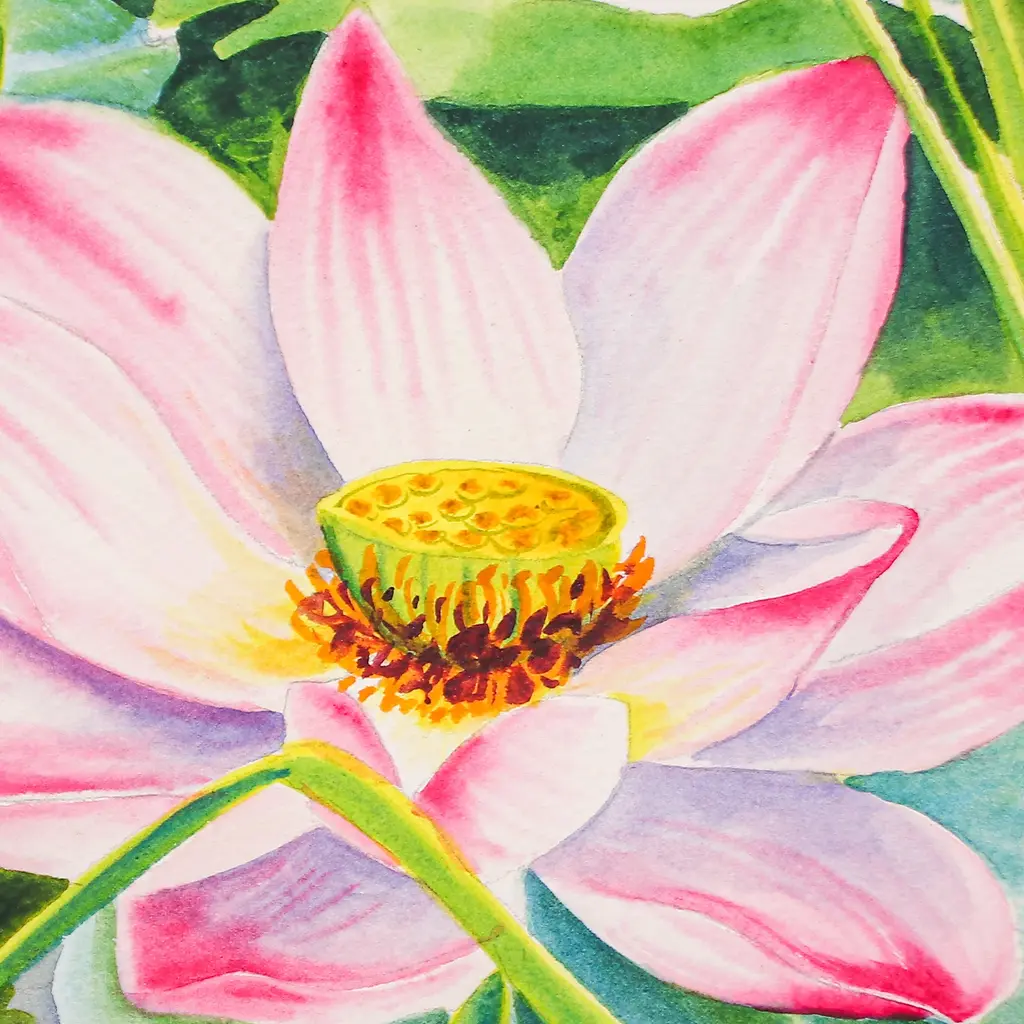Floral Impressionist Watercolor Painting Of Pink Lotus- Spring Lotus