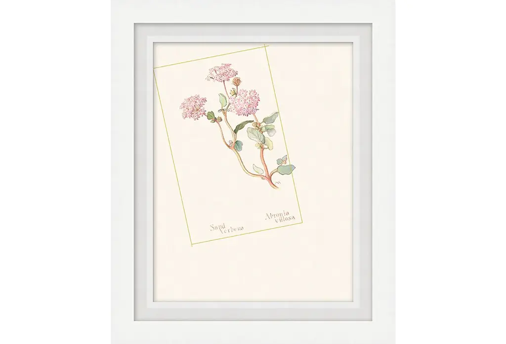 Designed by us and available only at One Kings Lane: A reproduction of an original lithograph, this watercolor floral study is printed on matte paper with a white linen liner. This beautifully framed work arrives ready to hang.