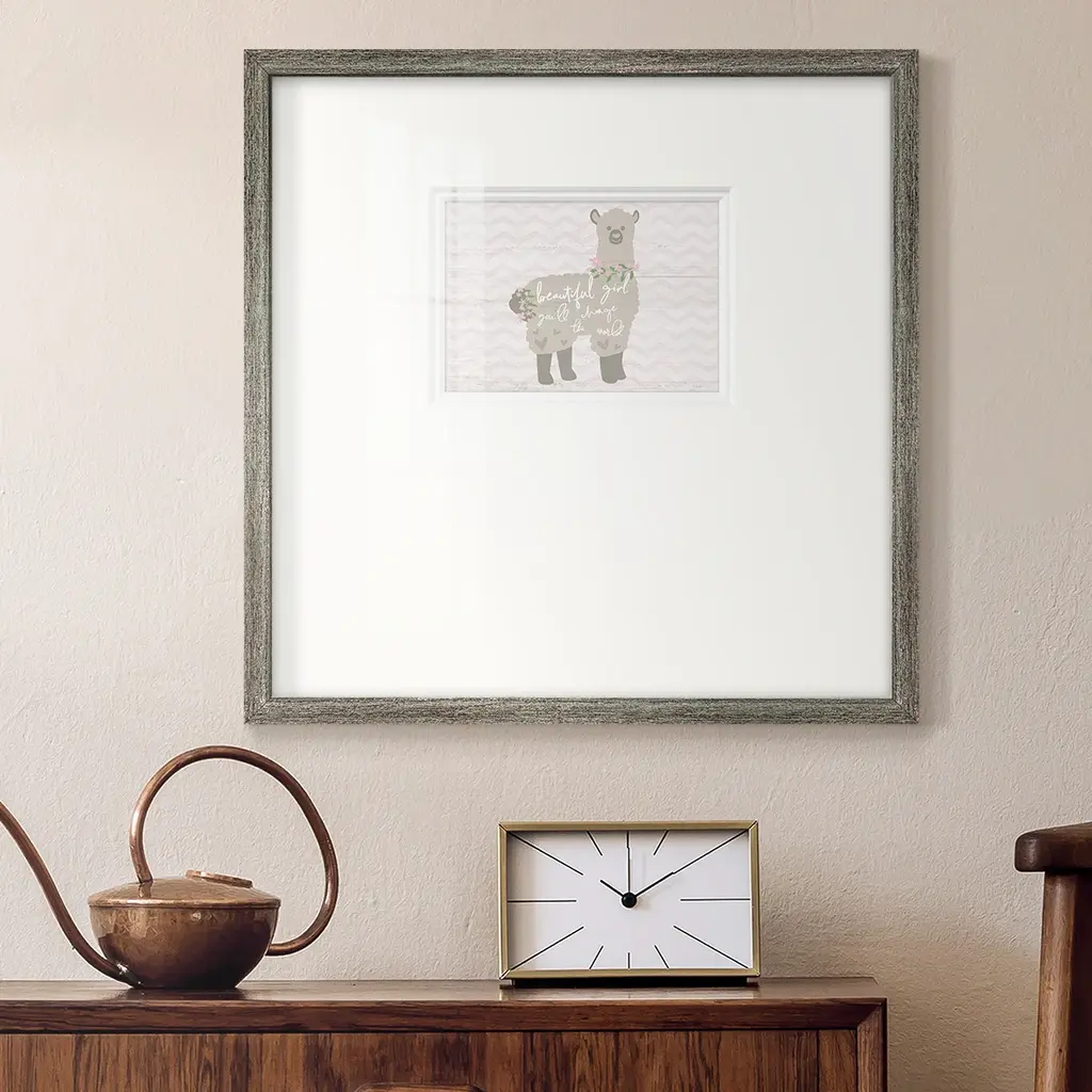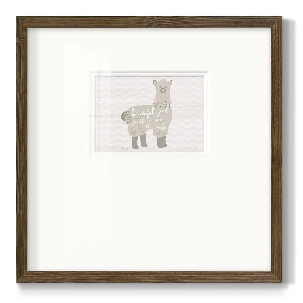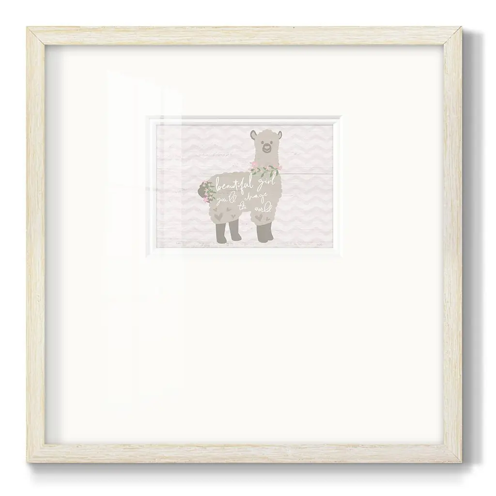 Floral LlamaPremium Framed Print A framed cold pressed paper print featuring superior double matting and quality frame. 2 SIZES AVAILABLE 16''X16''' - Overall Size 20''X20''' - Overall Size Each piece is made to order. Each piece comes with hanging hardware. Made in the USA Ready to Hang Giclee Paper Print Plexiglass Beveled Matt Board Double Matte Board