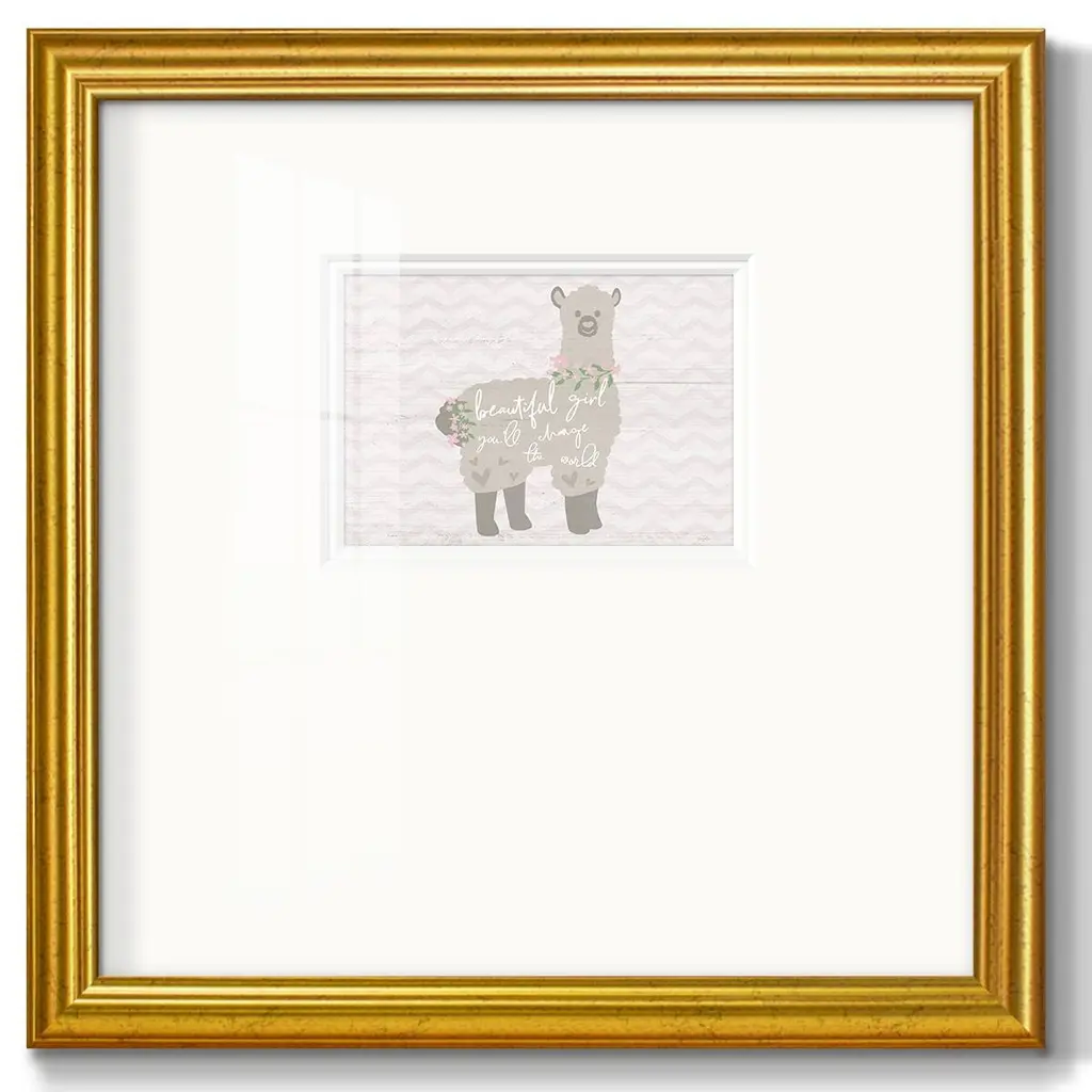 Floral Llamapremium Framed Print - 20x20 - Gold