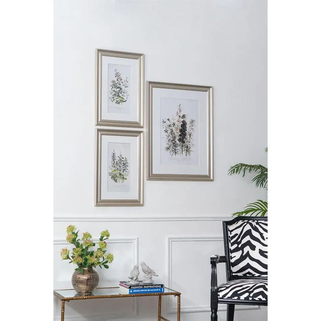 Give interior décor a year-round touch of spring with this set of three floral wall art prints. The set includes one larger and two smaller prints, all of which feature delicate, colorful flowers set against a clean white background. Hang together in a thematic group or separately as desired.