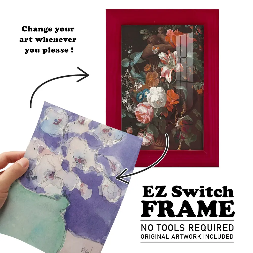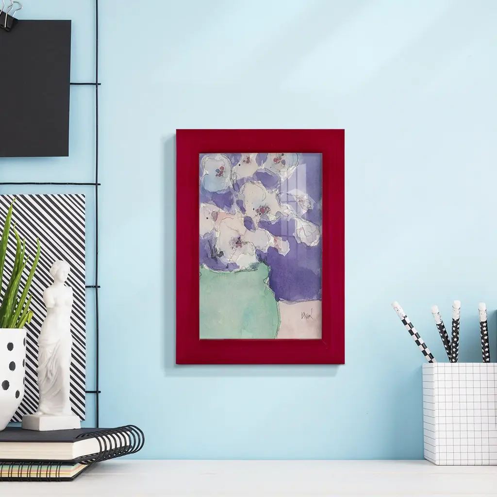 Floral Objects I -EZ SWITCH Framed Print w/glass-Cherry Red A delightful, framed print. Featuring a solid wood frame with real wood glass. This premium print is giclee quality. In addition, every frame features a removable back and table top stand. This allows you to change your art in the future or to just stand the art on a table for a new look. We are sure you'll enjoy our new series of EZ SWITCH Framed Art. Solid Wood Frame Real Glass Removable / Replaceable Art Built in Tabletop Stand Sizes range from 4x6 up to 12x15 - buy just one or pair them up as sets as you see fit.