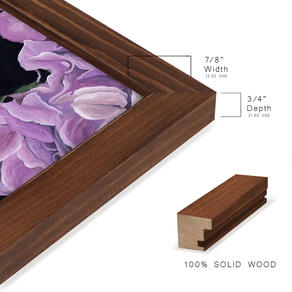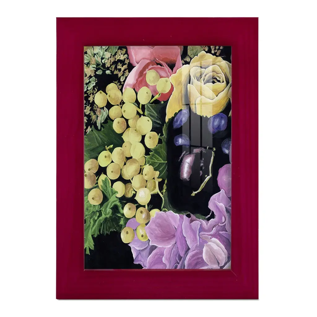 Floral on Black I -EZ SWITCH Framed Print w/glass-Cherry Red A delightful, framed print. Featuring a solid wood frame with real wood glass. This premium print is giclee quality. In addition, every frame features a removable back and table top stand. This allows you to change your art in the future or to just stand the art on a table for a new look. We are sure you'll enjoy our new series of EZ SWITCH Framed Art. Solid Wood Frame Real Glass Removable / Replaceable Art Built in Tabletop Stand Sizes range from 4x6 up to 12x15 - buy just one or pair them up as sets as you see fit.