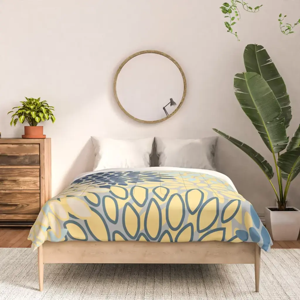 Floral Print, Yellow, Gray, Blue, Teal Comforter