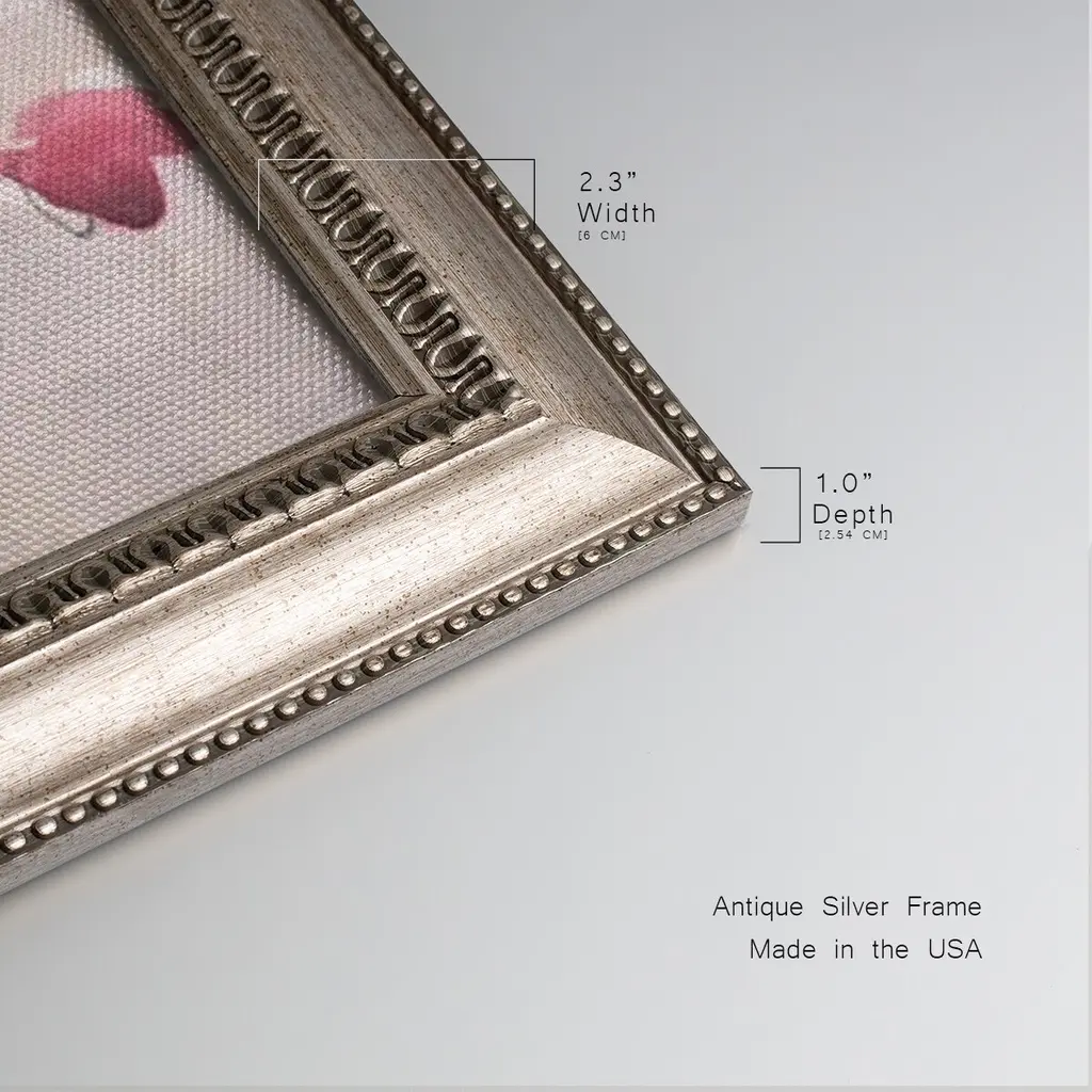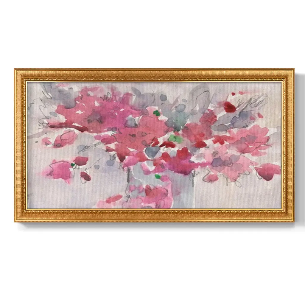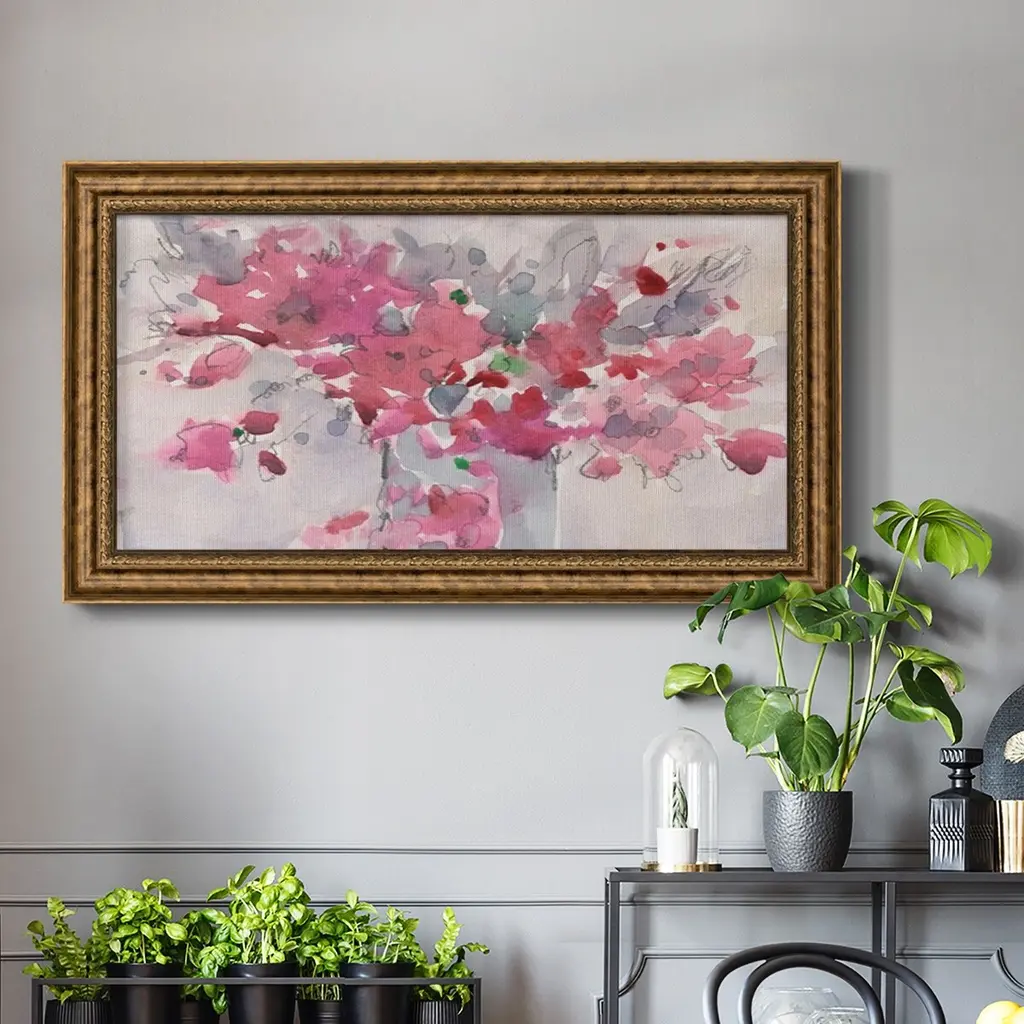 Floral Setting II Premium Framed Canvas- Ready to Hang A Premium Framed Canvas created to last. Framed in distressed wood and available in an array of sizes and colors Featuring a beveled a solid wood stretcher bar, each piece comes ready to hand 3 SIZES AVAILABLE 21''X37'' - Overall Size 25''X45'' - Overall Size 29''x53'' - Overall Size Each piece is made to order. Each piece comes with hanging hardware. Made in the USA Ready to Hang Giclee Paper Print Acrylic Glass Beveled Matt Board