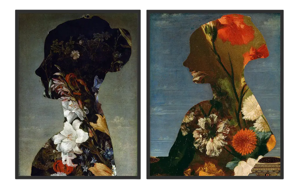 DESCRIPTION: Floral Silhouette Diptych by Lara Fowler in Gold Frame, XS Art Print SPECIFICATIONS: Type: Framed Paper. Individual Frame Size (in): 12x16. Orientation: Vertical. Flush/Float/Matted: Flush. Frame Color: Gold. Hanging Hardware: Picture Perfect. 2 pieces are included with this purchase. Overall set dimensions as pictured: 24x16. FRAMING: Each art work arrives framed and ready to hang. We use handmade frames with a plexiglass glazing front, because it offers less glare than standard glass. At this time, we only offer framed prints. ARTIST BIO: Lara Fowler is a British artist who creates quirky art prints with a twist.