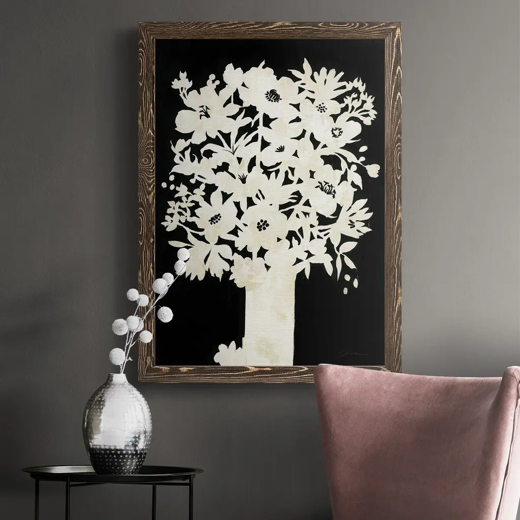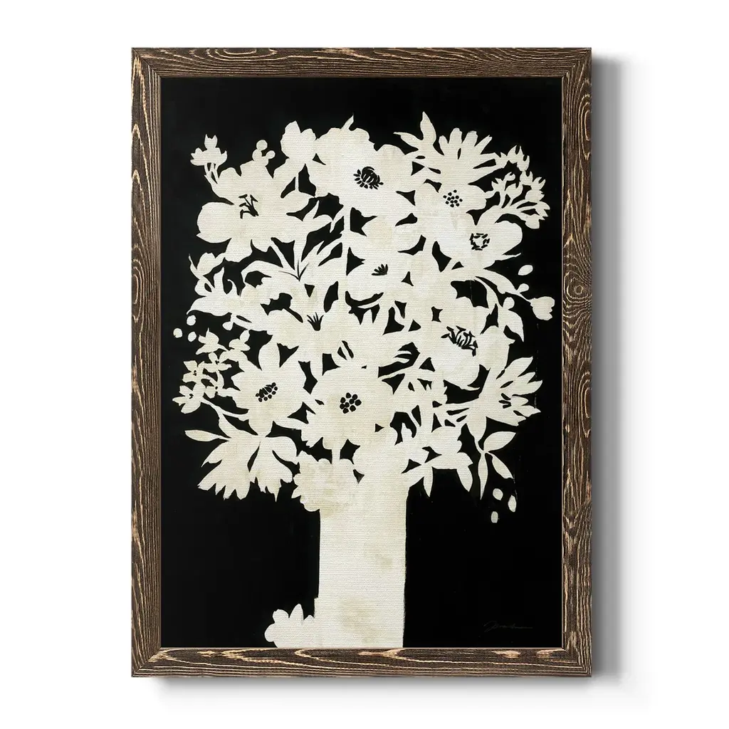 Floral Silhouette-Premium Framed Canvas - Ready To Hang - 27.5x37.5 - Walnut