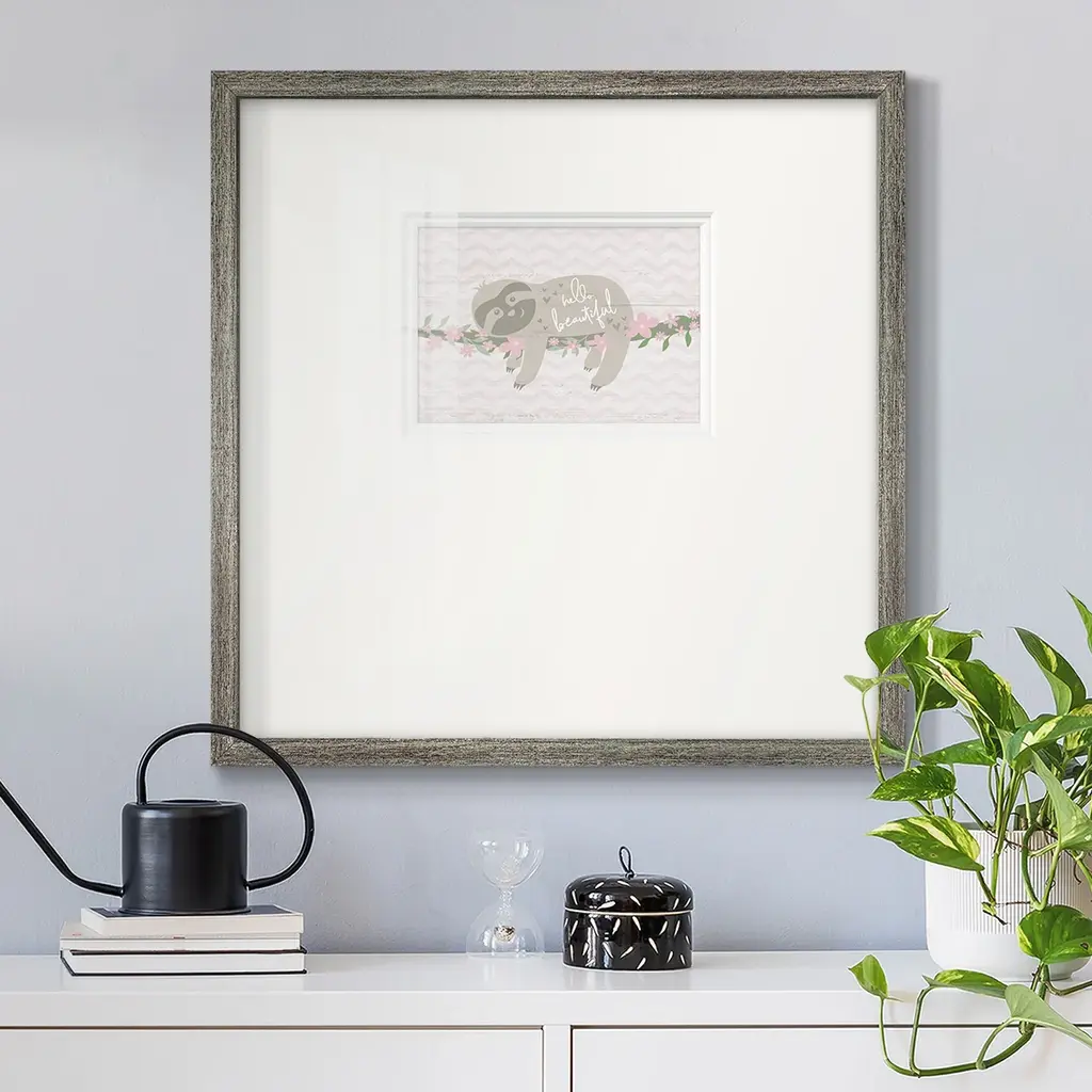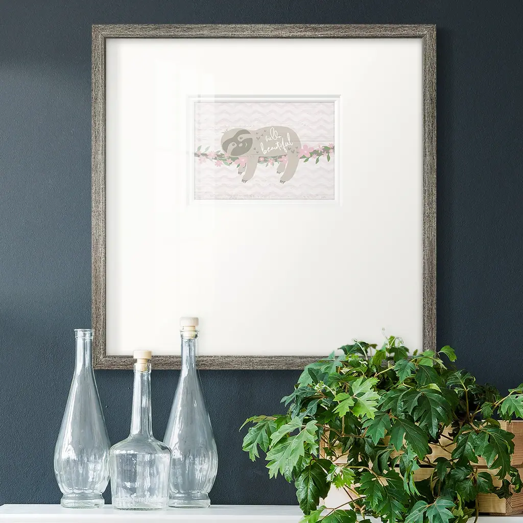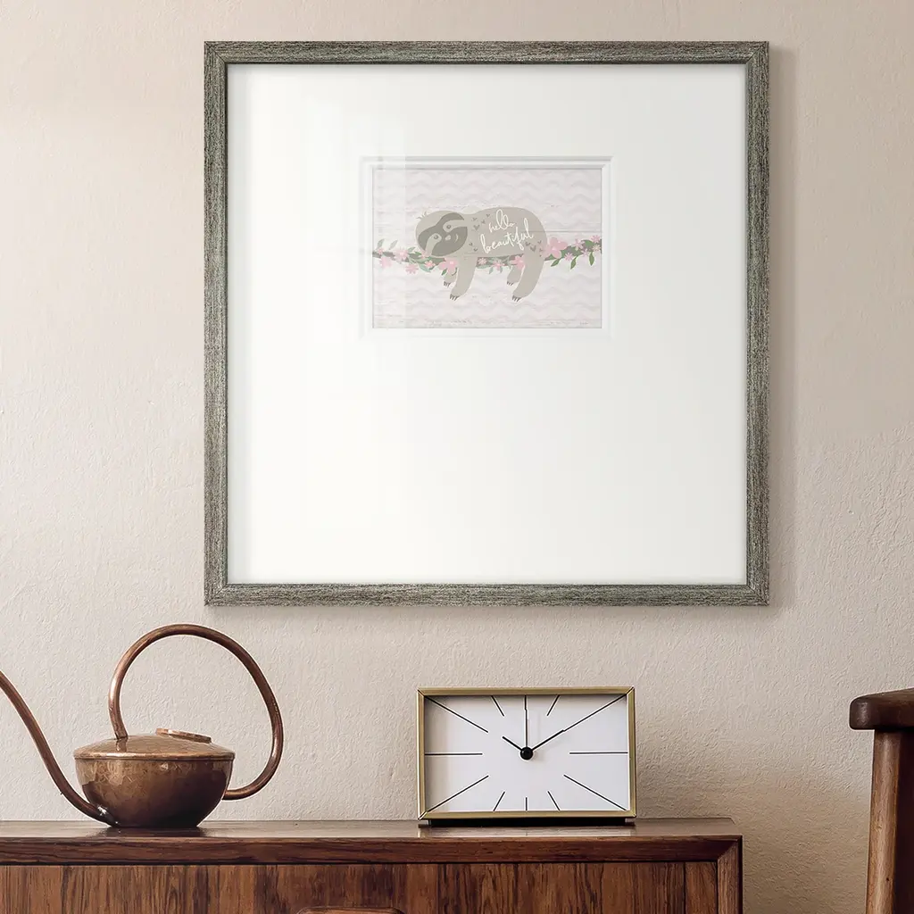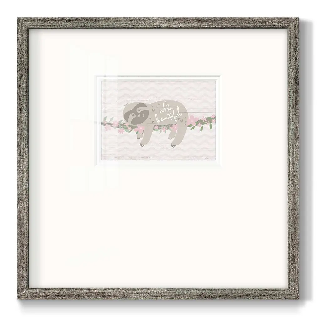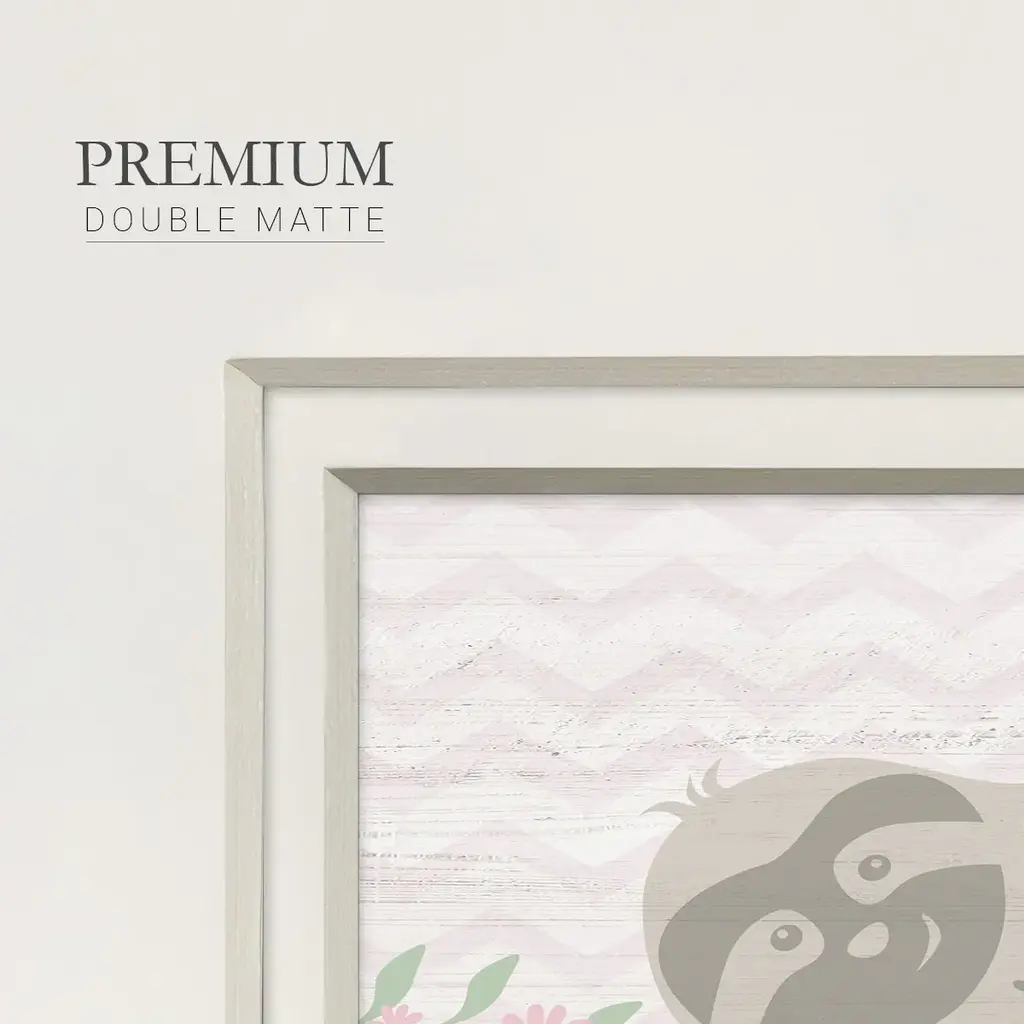 Floral SlothPremium Framed Print A framed cold pressed paper print featuring superior double matting and quality frame. 2 SIZES AVAILABLE 16''X16''' - Overall Size 20''X20''' - Overall Size Each piece is made to order. Each piece comes with hanging hardware. Made in the USA Ready to Hang Giclee Paper Print Plexiglass Beveled Matt Board Double Matte Board