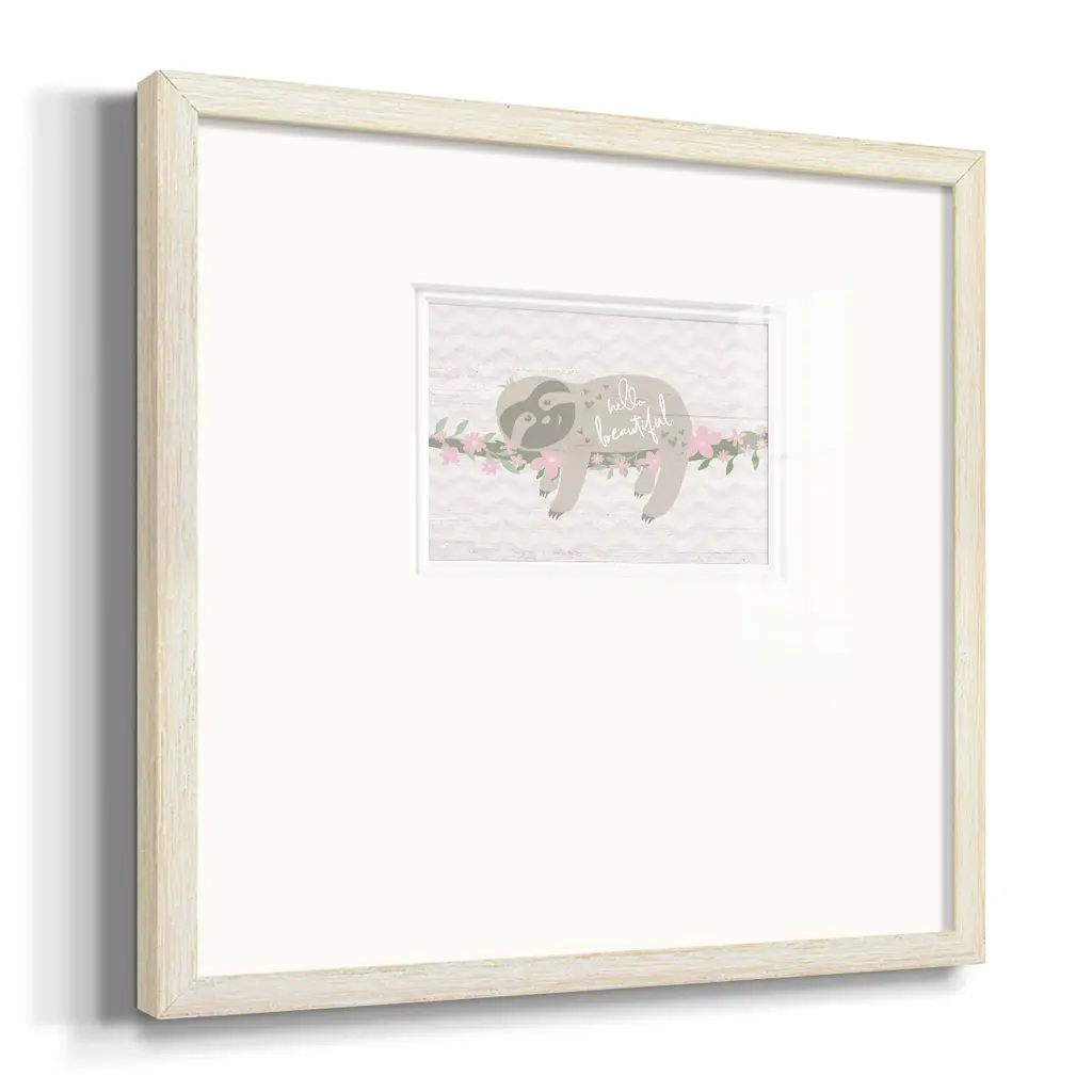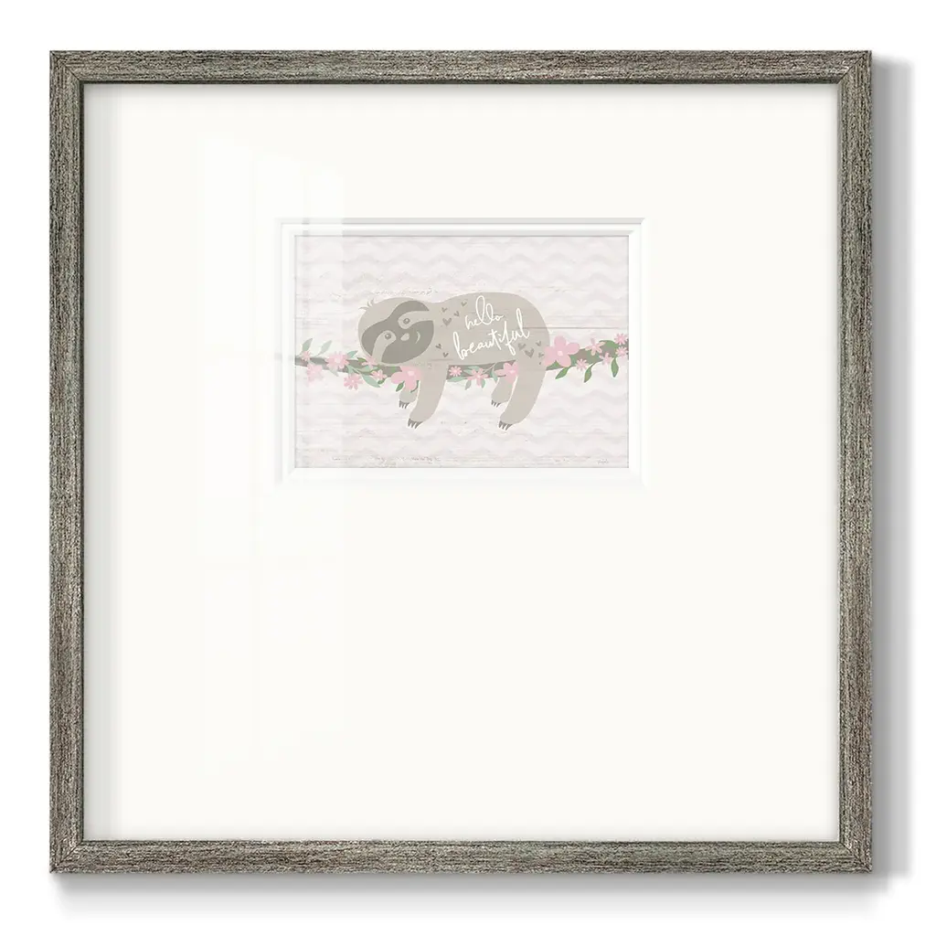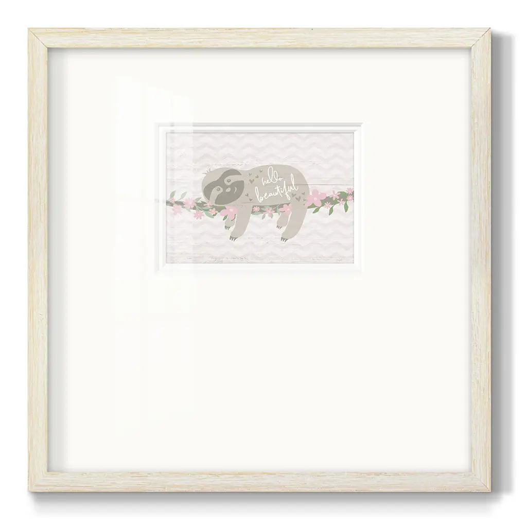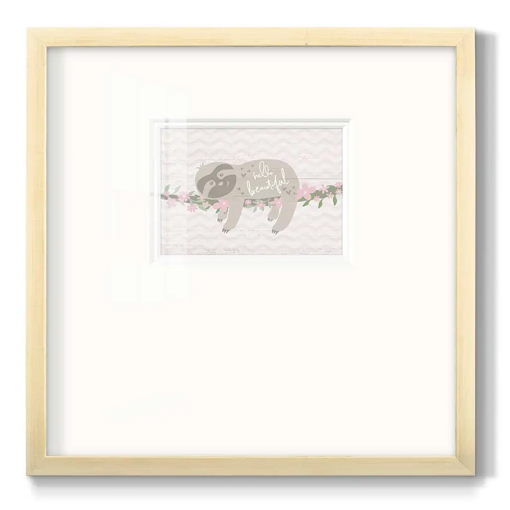 Floral SlothPremium Framed Print A framed cold pressed paper print featuring superior double matting and quality frame. 2 SIZES AVAILABLE 16''X16''' - Overall Size 20''X20''' - Overall Size Each piece is made to order. Each piece comes with hanging hardware. Made in the USA Ready to Hang Giclee Paper Print Plexiglass Beveled Matt Board Double Matte Board