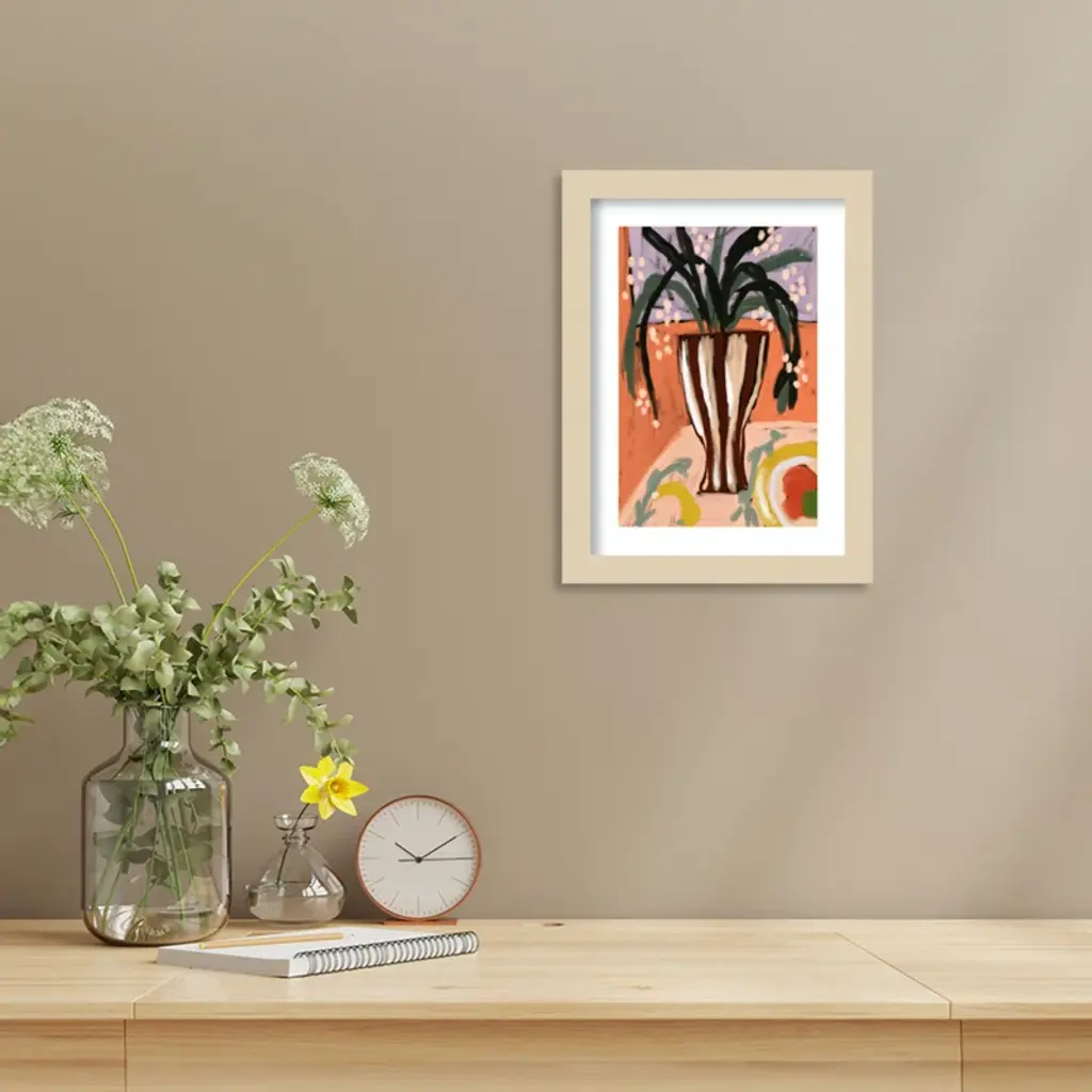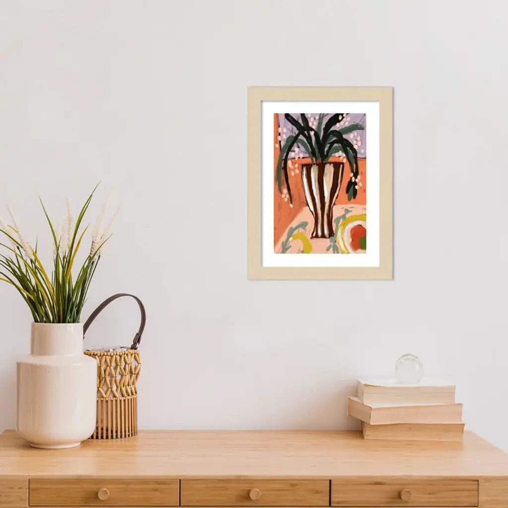 Art description: this framed art print was created by Treechild and printed in Madison, WI. The print is giclee printed using fade-resistant inks for picture-perfect detail and incredible depth of color and finished with a 100% real wood frame. Individually made using traditional custom framing techniques, it has the quality you would expect from your local frame shop. Custom artwork details: Floral still life no 3 by Treechild. 100% real wood frame details: the art is framed in a svelte frame which measures 1 in. Wide and stands 1 in. Off the wall. This piece also includes a smooth bright mat. Quality and authenticity: prints are giclee printed using fade-resistant inks for picture-perfect detail and incredible depth of color. They are protected with a shatterproof sheet of gallery-quality acrylic, which resists UV rays and light damage better than traditional glass. The artwork is authentically licensed. Protective backing: Premium paper prints permanently adhere to a rigid backer board to prevent rippling over time. Hassle-Free hanging: Ready to hang for easy installation. All framed prints have a durable hanging wire attached to the back and a hanging hook and nail. Assembled in the USA: Each piece is assembled to order in Madison, WI USA. For home or commercial use: Because of our attention to detail and focus on artistry, architects, interior designers, and homeowners alike choose this framed art print to create beautiful living spaces.