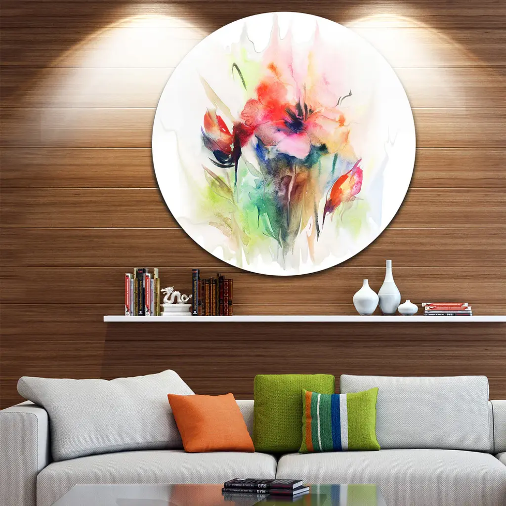 Bring Contemporary Abstraction to your home with this large Circle Metal wall art. This Floral Watercolor Illustration Metal Artwork makes it the focal point of any room or office. - White Gloss Coating ensures colors are extra vibrant with light reflection.- Aluminum grade Sheet Metal with 1 inch mounting frame on the back giving the illusion that the artwork is floating on the wall..- Mounting Brackets are included along with instructions.- High Quality Digital images are created directly into a glossy aluminum panel producing a stunning and captivating print into the glossy finish of the metal.- Water, Fire and Scratch resistant HD Aluminum panels.- Looks better than any photo paper and guaranteed to last at least 20 years- Easy to clean with a microfiber cloth. Colors are far superior to regular Canvas Art. - Easy to Hang