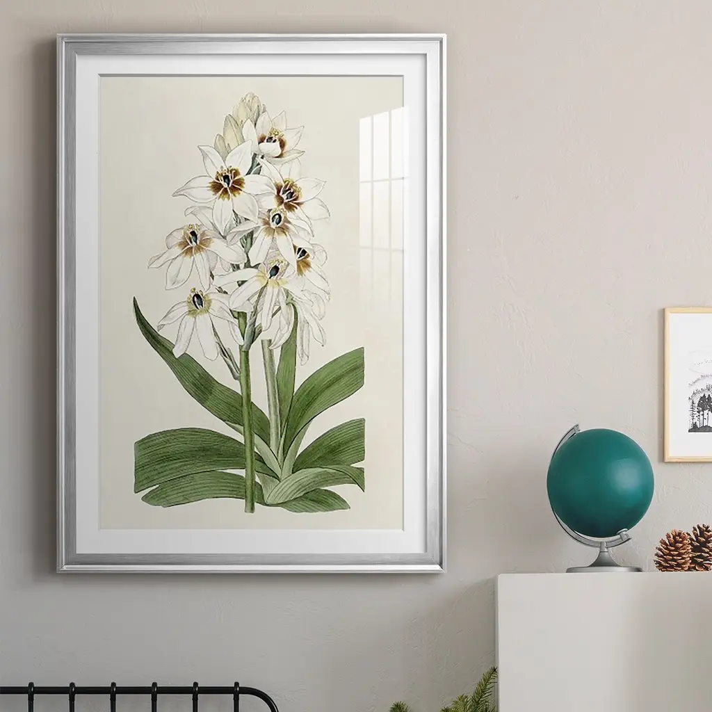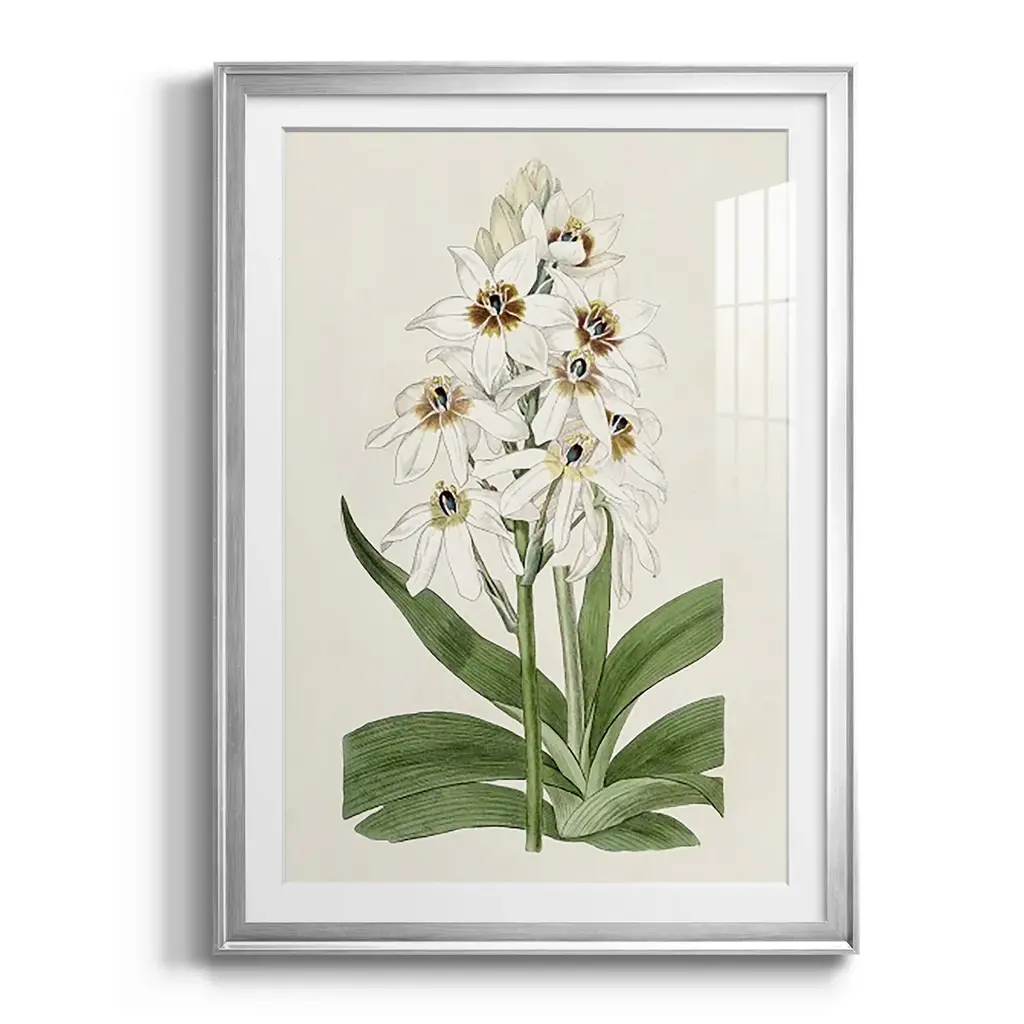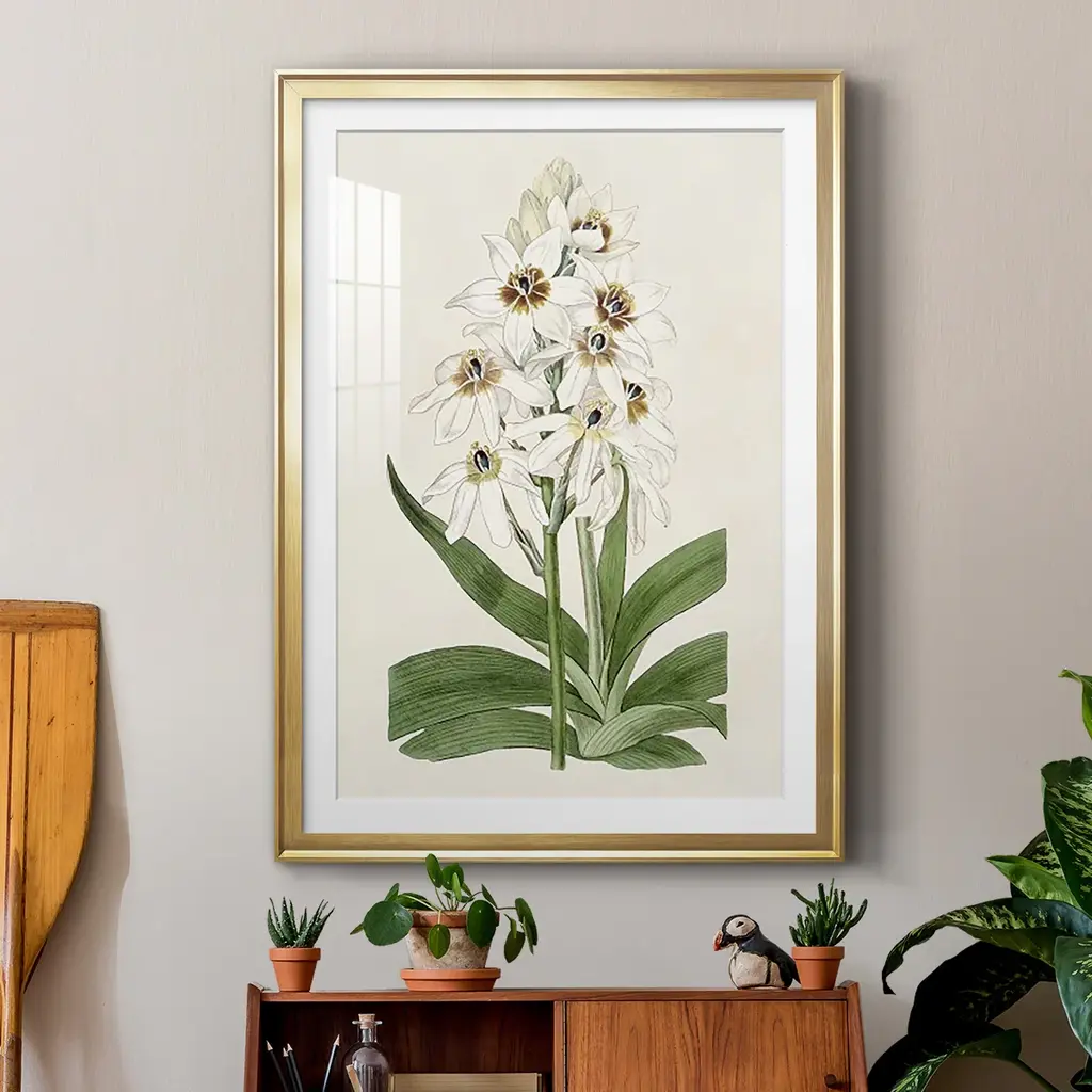 Flore Albo I Premium Framed Print - Ready to Hang A Premium Framed Print created to last. Framed in distressed wood and available in an array of sizes and colors Featuring a beveled a solid wood stretcher bar, each piece comes ready to hand 4 SIZES AVAILABLE 30.5''X42.5'' - Overall Size 26.5'X36.5'' - Overall Size 22.5''x30.5'' - Overall Size 18.5''x24.5'' - Overall Size Each piece is made to order. Each piece comes with hanging hardware. Made in the USA Ready to Hang Giclee Paper Print Acrylic Glass Beveled Matt Board