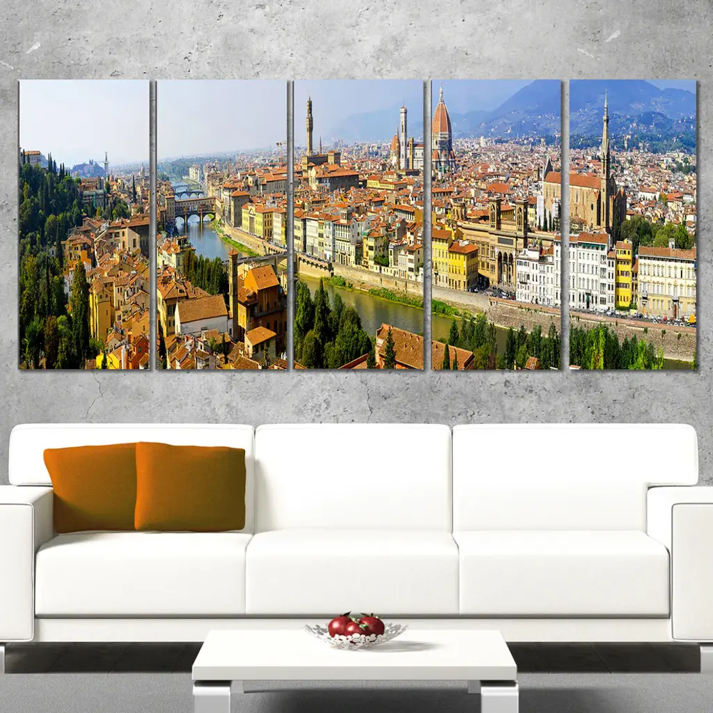 The Florence Panoramic View canvas art print is sure to make an impression on anyone who sees it. This artwork is gallery wrapped around a 1-inch solid wood frame and arrives carefully packaged and entirely ready to hang on the wall. Design Art only uses the highest resolution and pigments to ensure a crisp colorful print that is never faded or pixelated. This artwork is sure to be a conversation starter in any home or office.