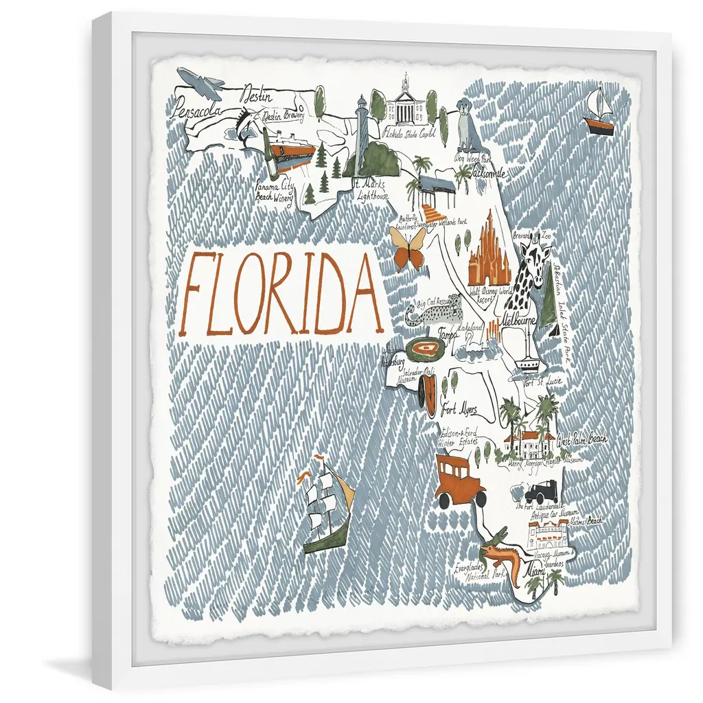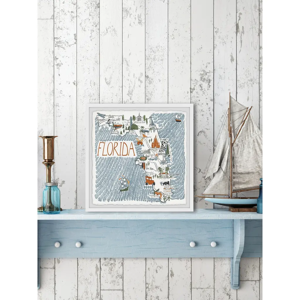 'Florida Illustrated Map Ii' Framed Painting Print - 12 X 12