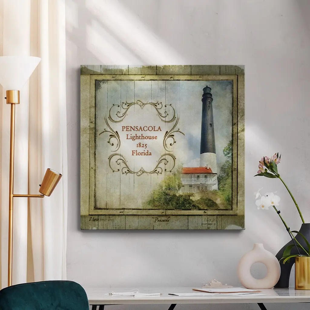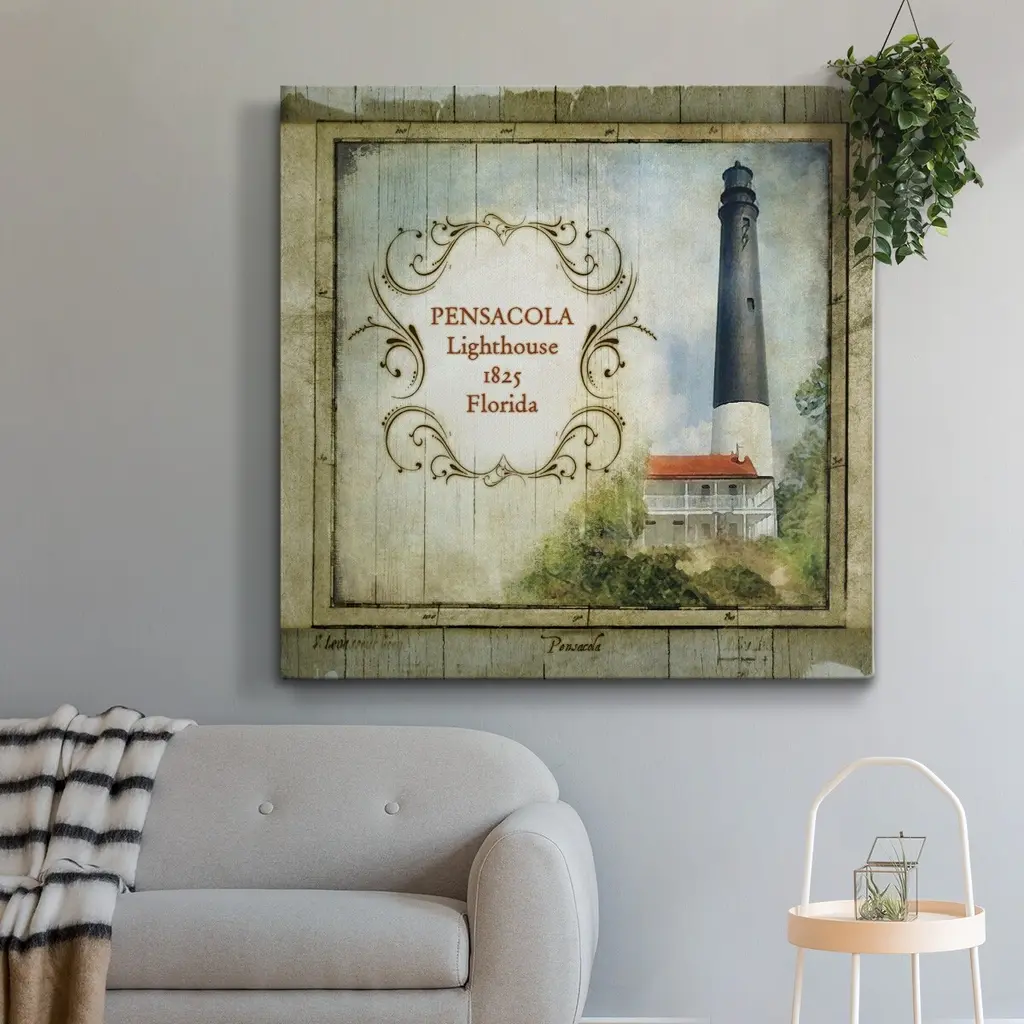 Florida Lighthouse VII-Premium Gallery Wrapped Canvas - Ready to Hang A premium hand stretched gallery wrapped canvas print created to last. Featuring a beveled a solid wood stretcher bar, each piece comes ready to hand 5 SIZES AVAILABLE 10''X10'' - Overall Size 16''x16'' - Overall Size 24''x24'' - Overall Size 32''x32'' - Overall Size 40''x40'' - Overall Size Each piece is made to order. Built to Last Each piece comes ready to hang Solid wood stretcher Fade and Water resistant Made domestically