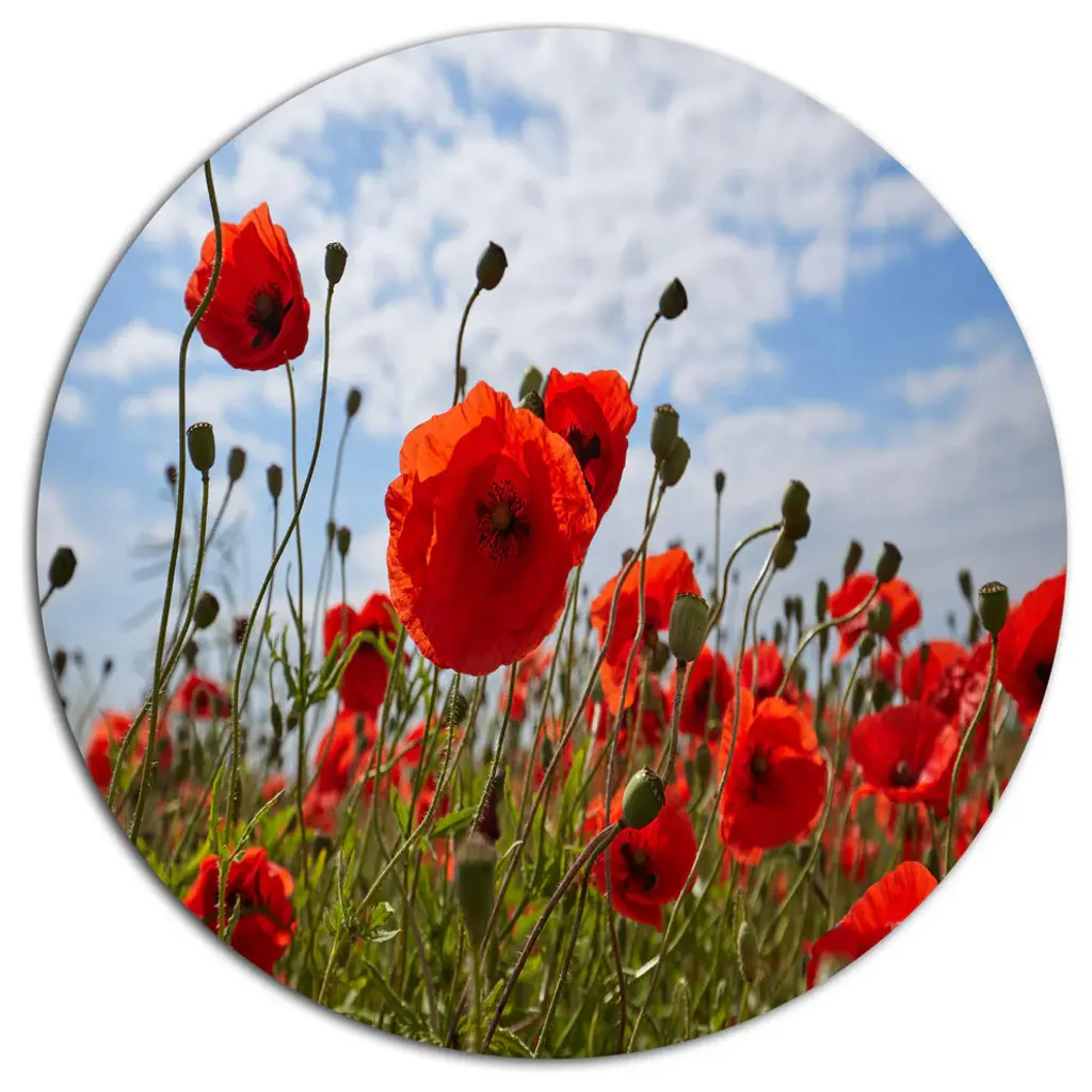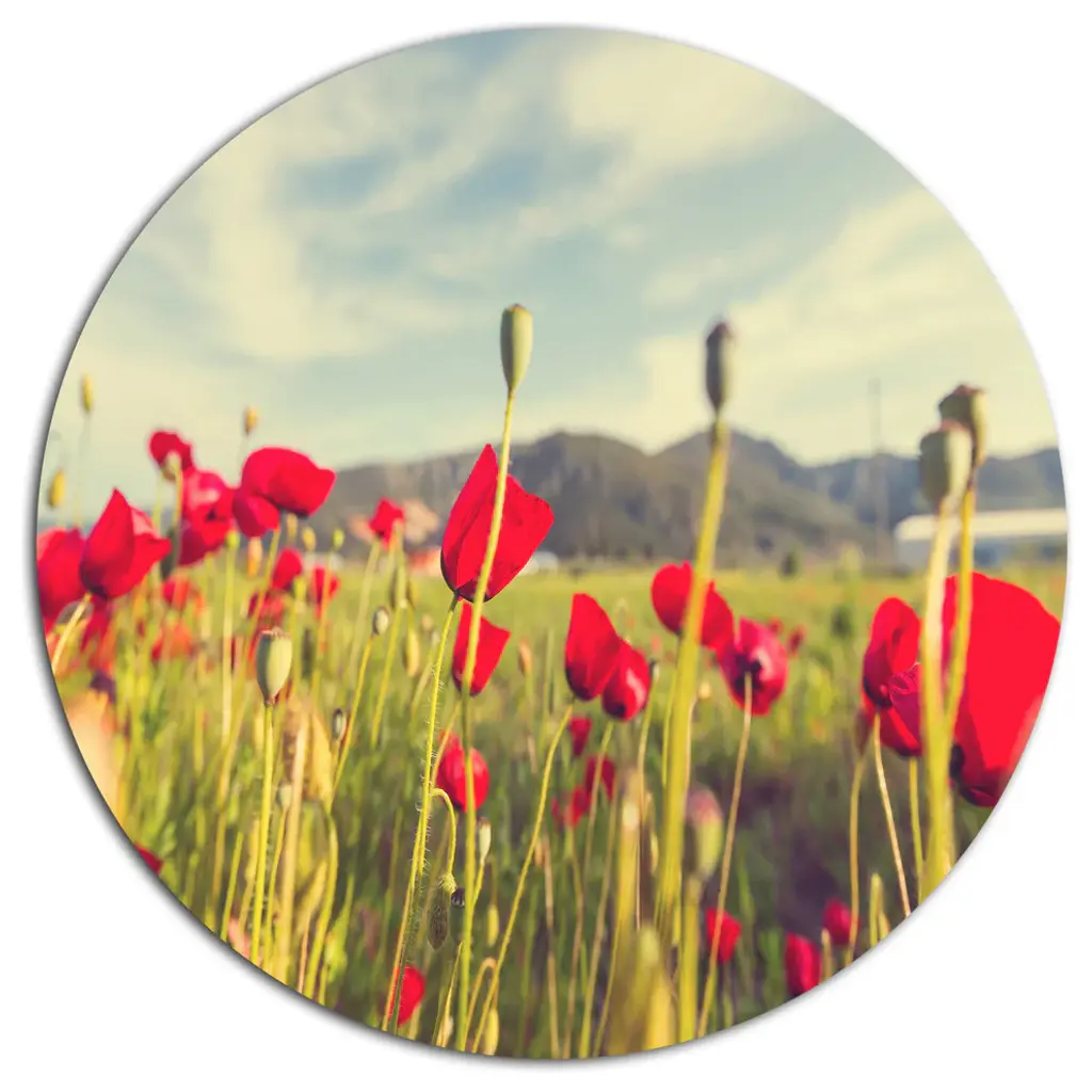 Flourishing Red Poppies, Flower Large Disc Metal Wall Art, 23"