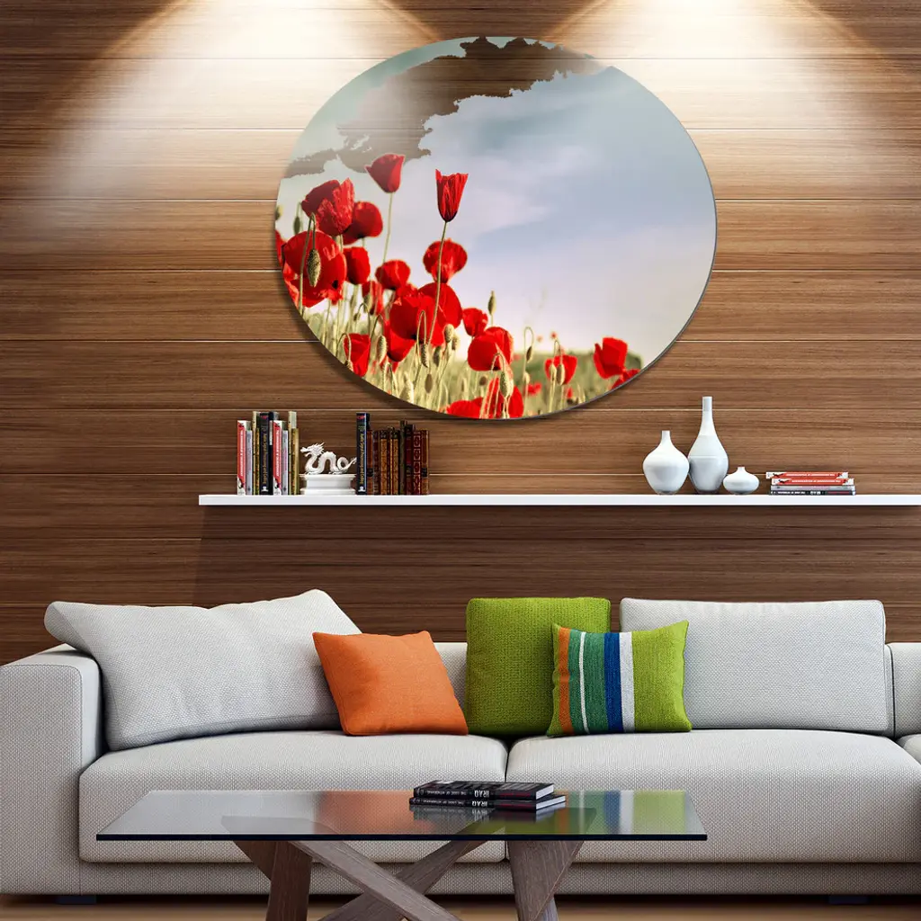 Flourishing Red Poppies, Flower Large Disc Metal Wall Art, 36"