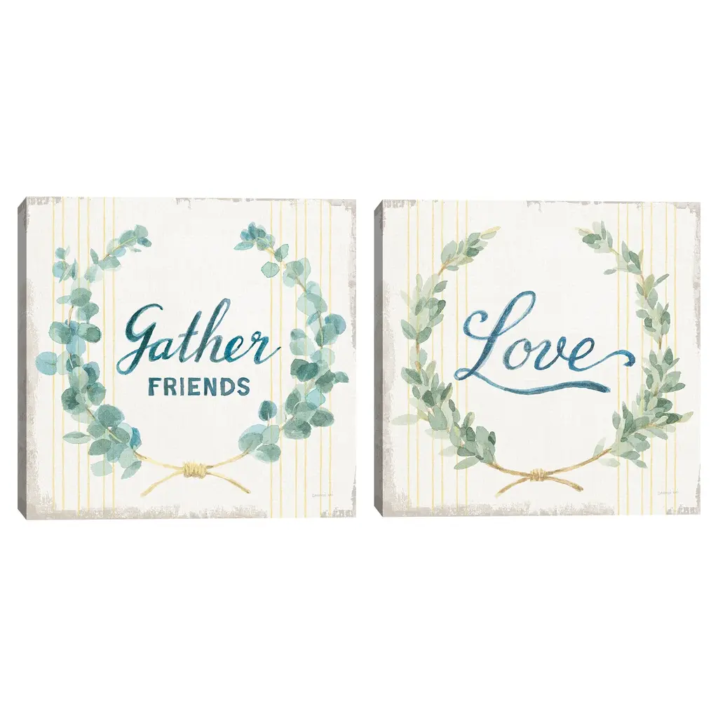 Adorn your walls with the laurels within this chic set of canvas prints. Featuring dainty hand-lettered cursive messages, each print combines delicate watercolor botanicals with subtle weathered details to achieve an ultra-trendy shabby chic composition that's perfect for your home. This set of giclee prints combine extraordinary detail and quality canvas into one affordable package. Offering full-bleed printing, which covers the entirety of the canvas, your new artworks also come ready to hang; eliminating the need for framing.