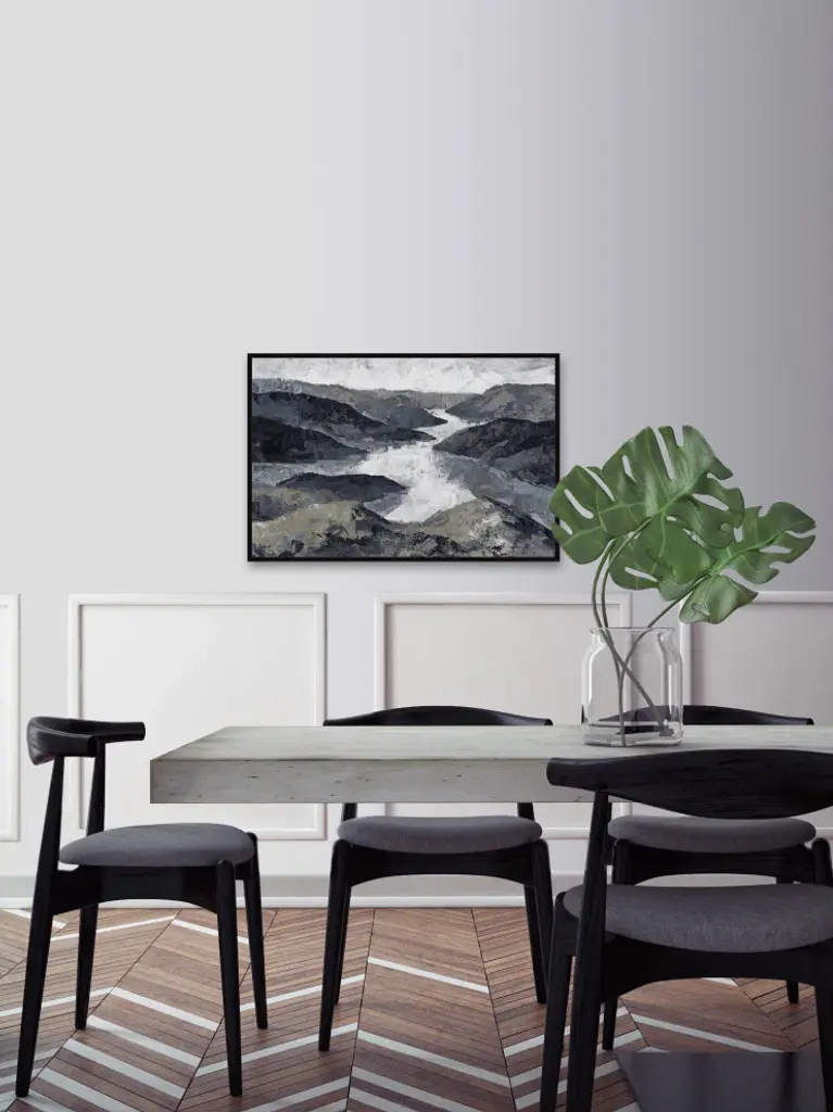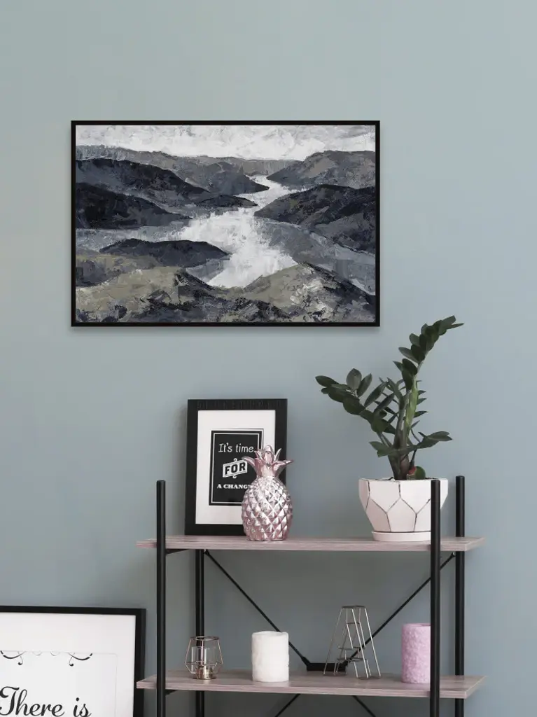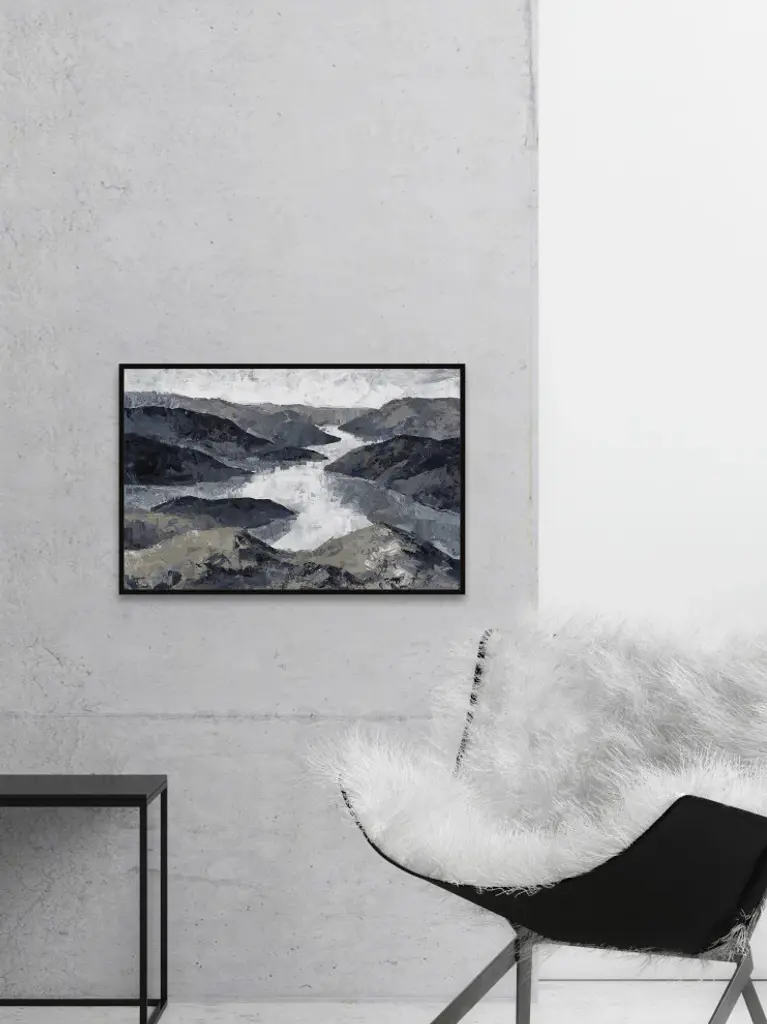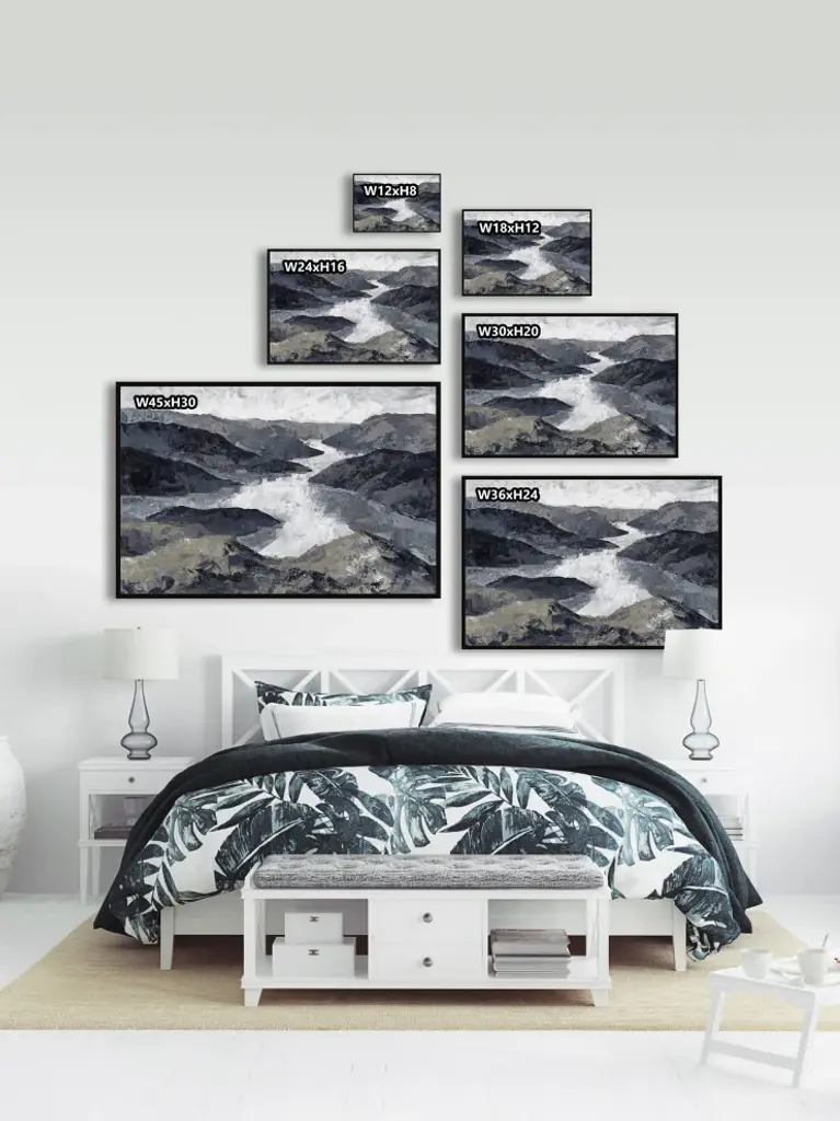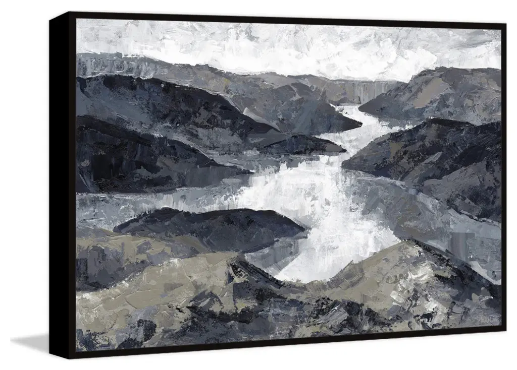 This acrylic painting print exudes a rustic, woodsy feel, featuring a windy river surrounded by various mountains. Proudly printed in the USA, this piece is printed on canvas before it''s stretched, and framed and mounted in a non-warping floater frame thereafter. With wall-mounting hooks included, this artful accent is ready to hang up as soon as it reaches your front door.- Durable art print on high quality canvas from the Marmont Hill Art Collective- Professionally hand stretched- Framed and mounted in non-warping floater frame- Arrives ready to hang- Includes a certificate of authenticity
