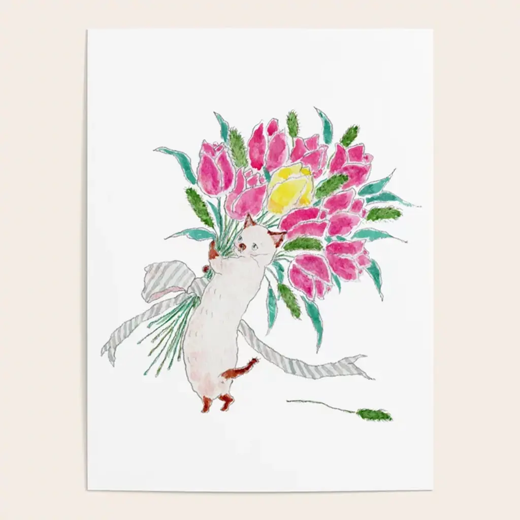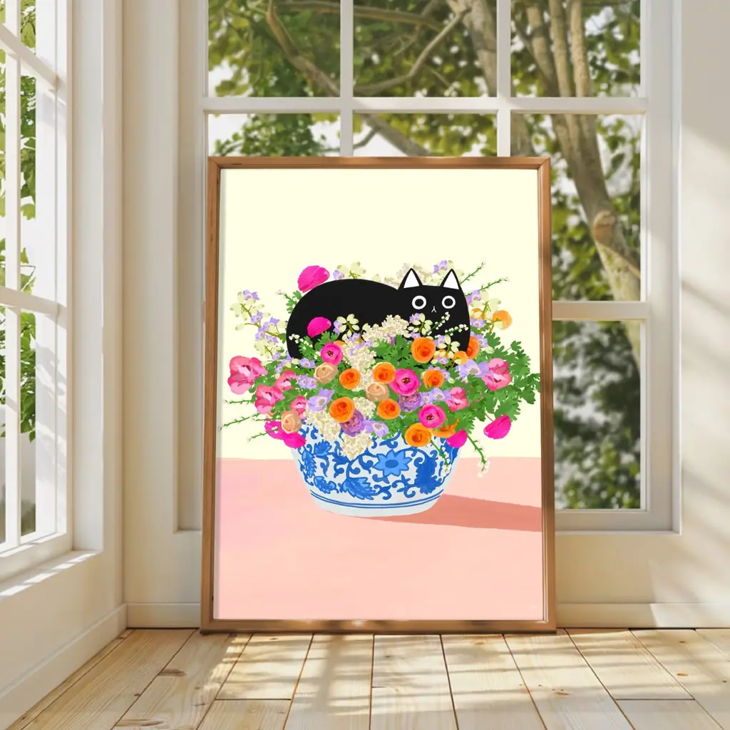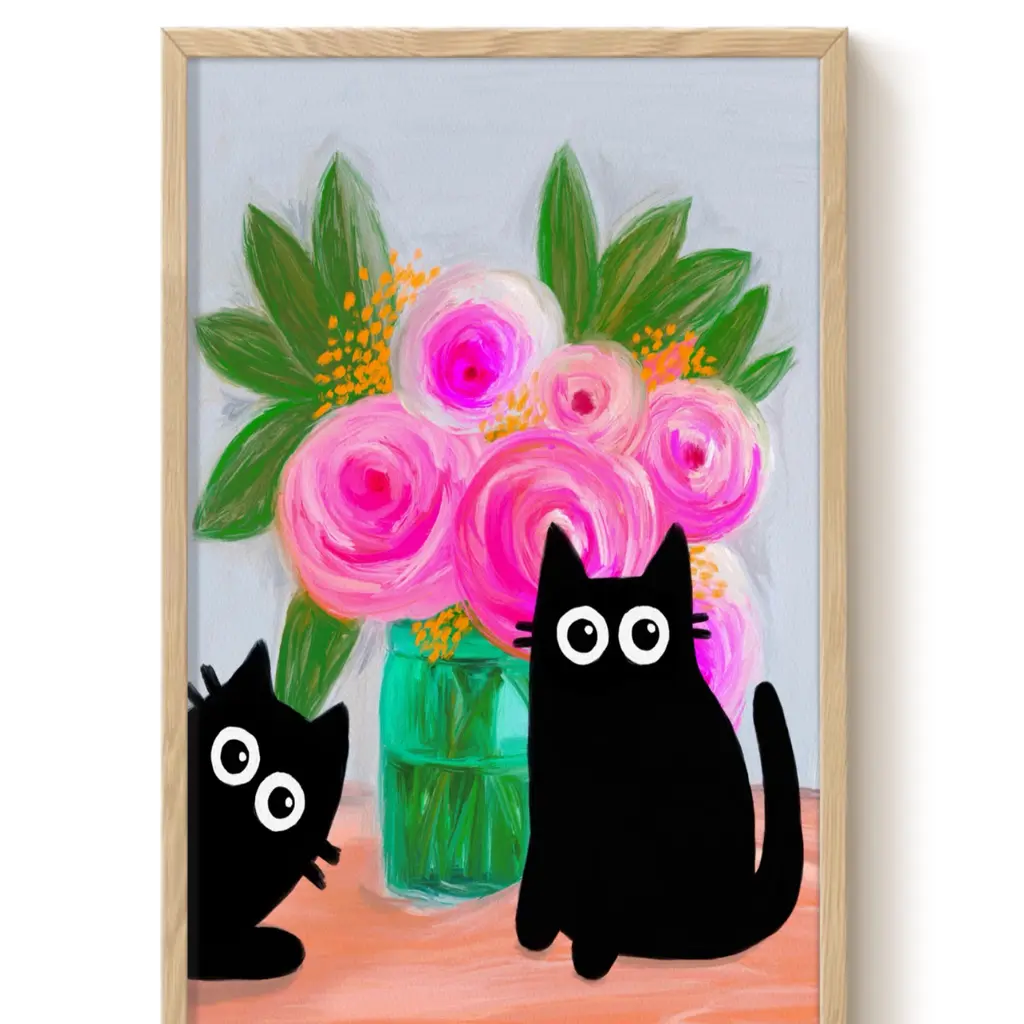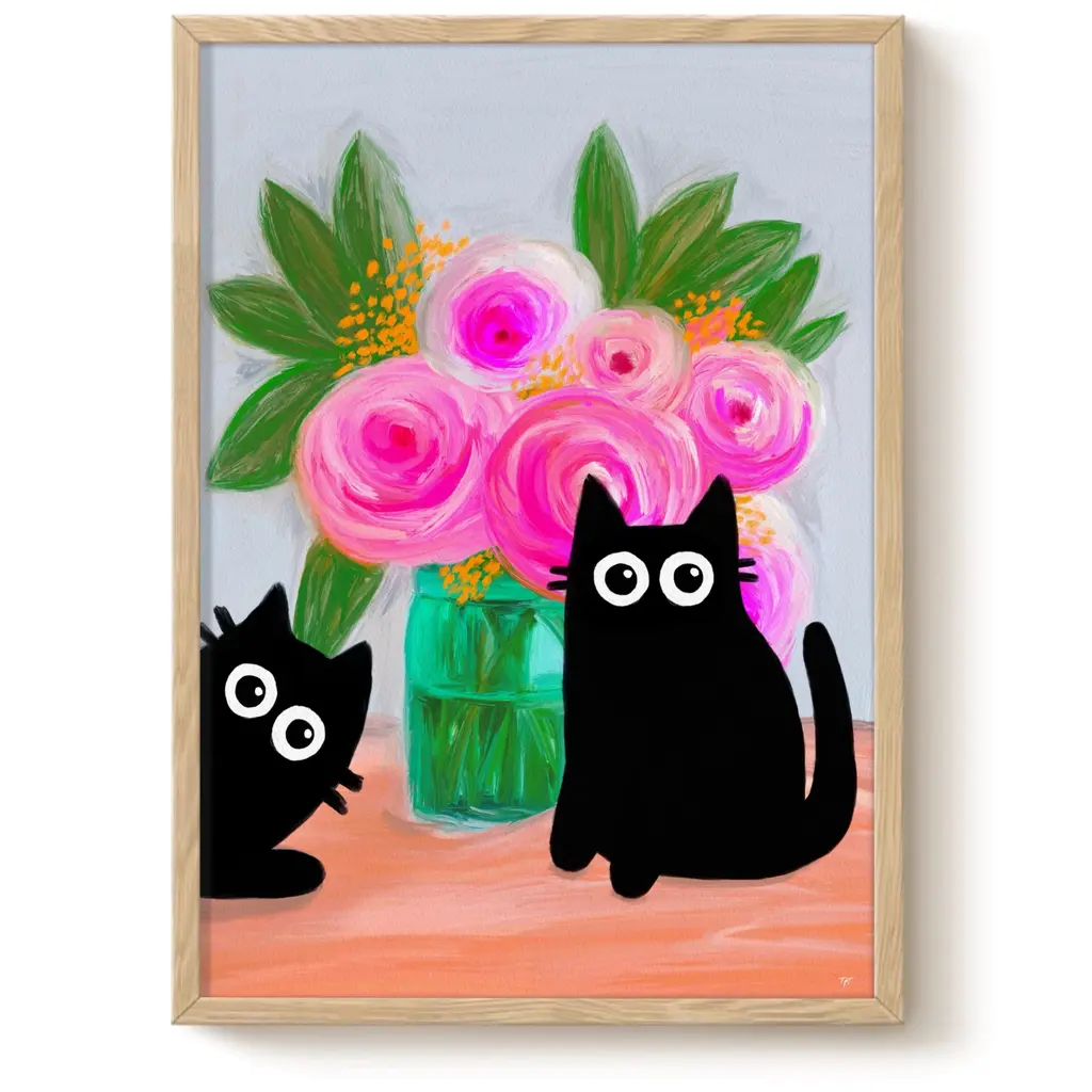 Flower Bed - Cat Art Print - LargeIllustrated by Maria. This print is perfect for all cat lovers alike! Printed in the U.K.Printed on premium matte, fine art, archival paperPaper weight: 230 gsmSold without a frame.