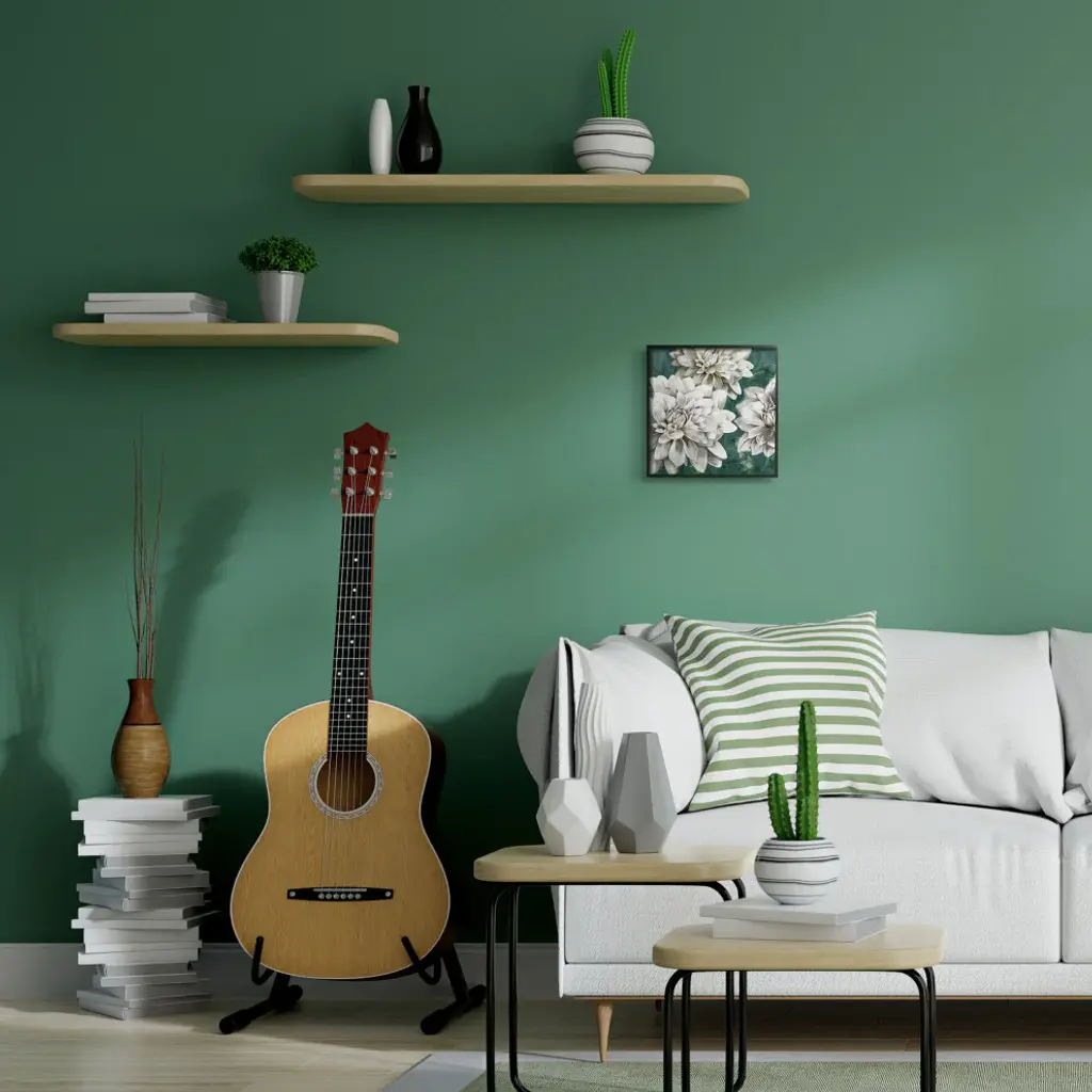 Flower Blooms Green White Painting, 12"x12", Black Frame