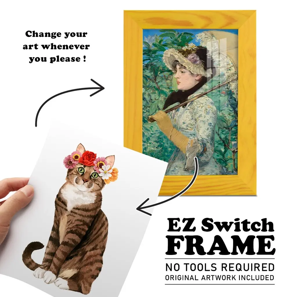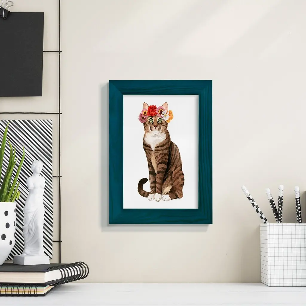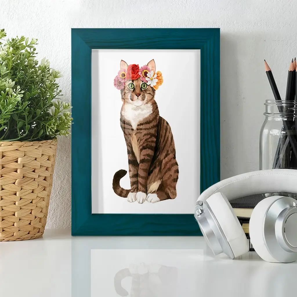 Flower Crown Cats II -EZ SWITCH Framed Print w/glass-Cherry Red A delightful, framed print. Featuring a solid wood frame with real wood glass. This premium print is giclee quality. In addition, every frame features a removable back and table top stand. This allows you to change your art in the future or to just stand the art on a table for a new look. We are sure you'll enjoy our new series of EZ SWITCH Framed Art. Solid Wood Frame Real Glass Removable / Replaceable Art Built in Tabletop Stand Sizes range from 4x6 up to 12x15 - buy just one or pair them up as sets as you see fit.