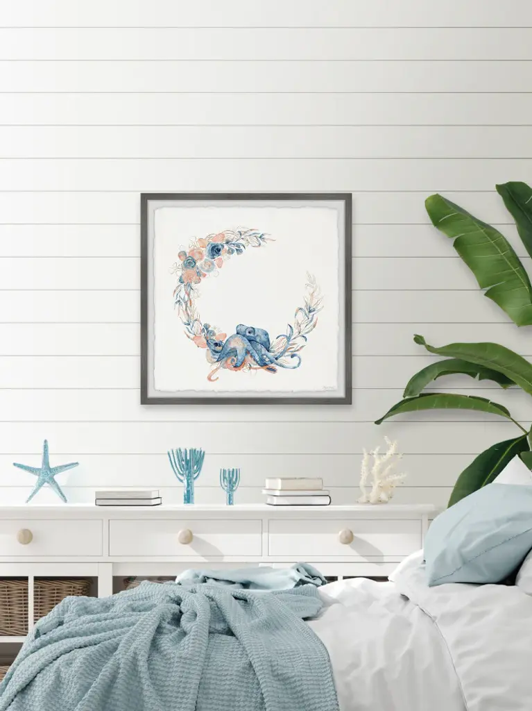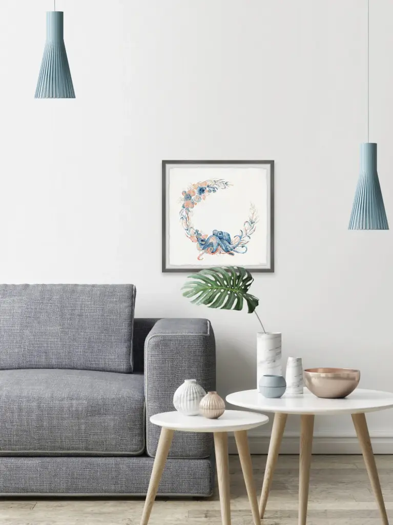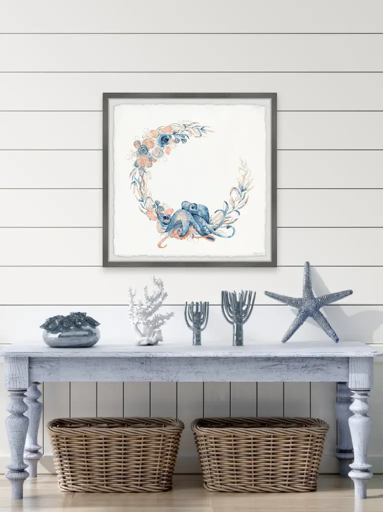 Featuring an adorable baby octopus surrounded by vibrant plants, this eye-catching watercolor painting print will have you wishing that you were snorkeling in the deep blue sea! Proudly printed in the USA, this piece is printed on high quality archive paper and professionally hand-framed. With wall-mounting hooks included, this artful accent is ready to hang up as soon as it reaches your front door.- Top quality Giclee print on high resolution Archive Paper- Hand cut deckled edges- High quality durable non-warping frame- Finished under shatter resistant plexiglass- Arrives ready to hang- Includes a certificate of authenticity- Printed in the USA