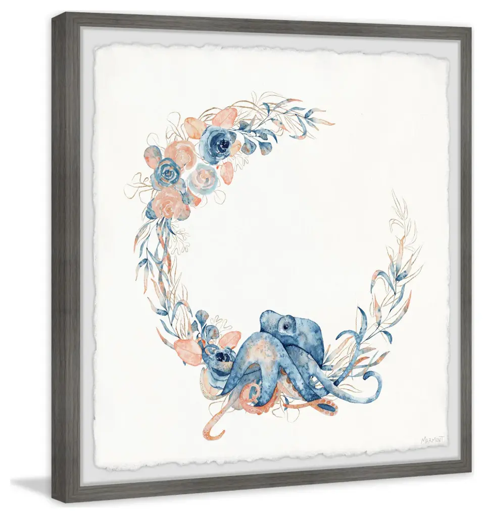 "Flower Crown Octopus" Framed Painting Print, 18x18