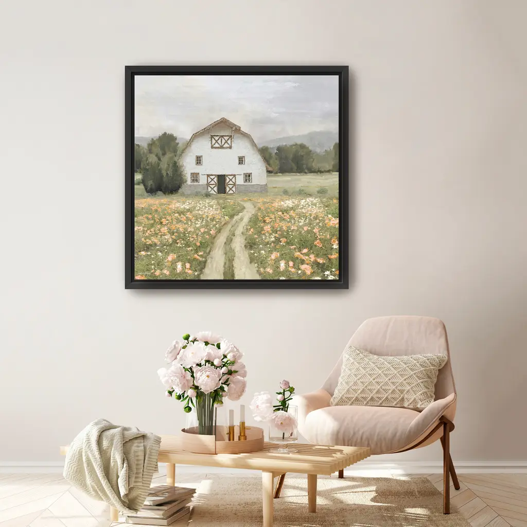 Flower Farm Canvas Giclee Wall Art - Framed / Walnut / 20x20