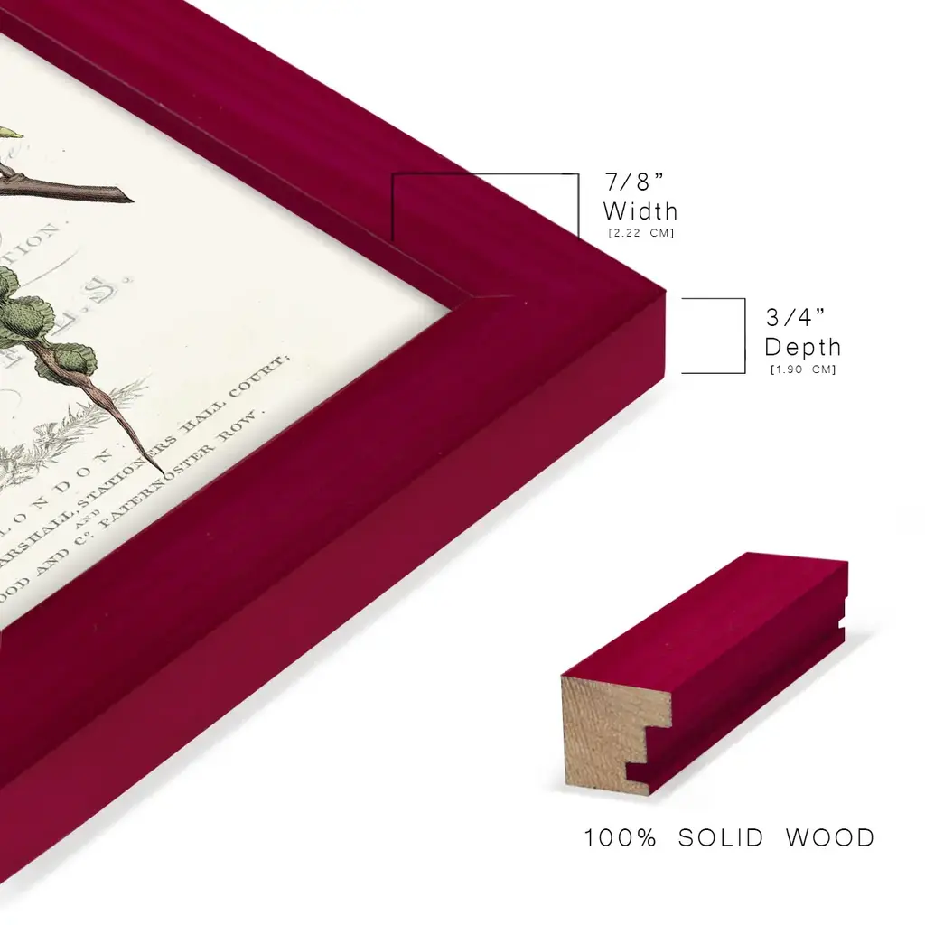Flower Garden Varietals III -EZ SWITCH Framed Print w/glass-Cherry Red A delightful, framed print. Featuring a solid wood frame with real wood glass. This premium print is giclee quality. In addition, every frame features a removable back and table top stand. This allows you to change your art in the future or to just stand the art on a table for a new look. We are sure you'll enjoy our new series of EZ SWITCH Framed Art. Solid Wood Frame Real Glass Removable / Replaceable Art Built in Tabletop Stand Sizes range from 4x6 up to 12x15 - buy just one or pair them up as sets as you see fit.