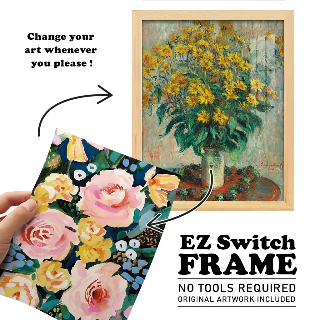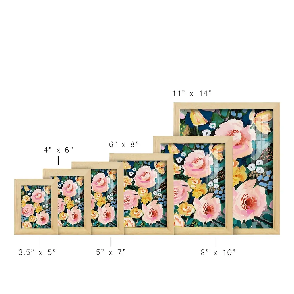 Flower Jumble I -EZ SWITCH Framed Print w/glass-Cherry Red A delightful, framed print. Featuring a solid wood frame with real wood glass. This premium print is giclee quality. In addition, every frame features a removable back and table top stand. This allows you to change your art in the future or to just stand the art on a table for a new look. We are sure you'll enjoy our new series of EZ SWITCH Framed Art. Solid Wood Frame Real Glass Removable / Replaceable Art Built in Tabletop Stand Sizes range from 4x6 up to 12x15 - buy just one or pair them up as sets as you see fit.