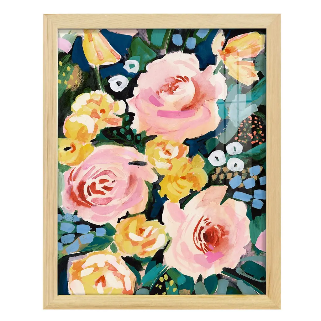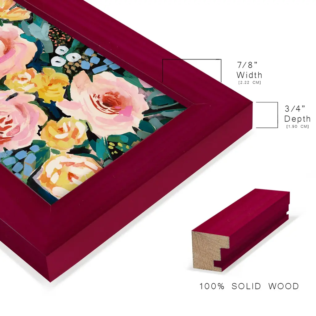 Flower Jumble I -EZ SWITCH Framed Print w/glass-Cherry Red A delightful, framed print. Featuring a solid wood frame with real wood glass. This premium print is giclee quality. In addition, every frame features a removable back and table top stand. This allows you to change your art in the future or to just stand the art on a table for a new look. We are sure you'll enjoy our new series of EZ SWITCH Framed Art. Solid Wood Frame Real Glass Removable / Replaceable Art Built in Tabletop Stand Sizes range from 4x6 up to 12x15 - buy just one or pair them up as sets as you see fit.