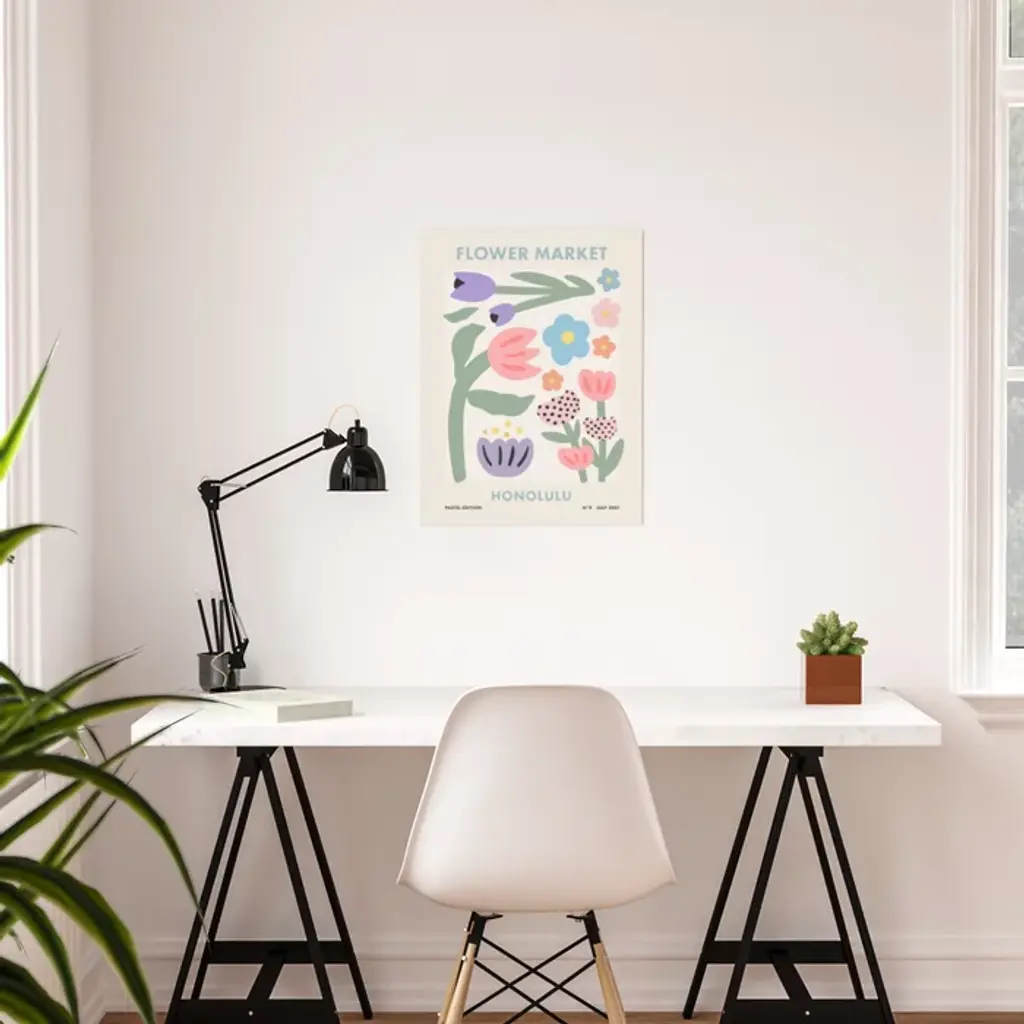 Flower Market Honolulu, Playful Retro Botanical Pastel Print Poster