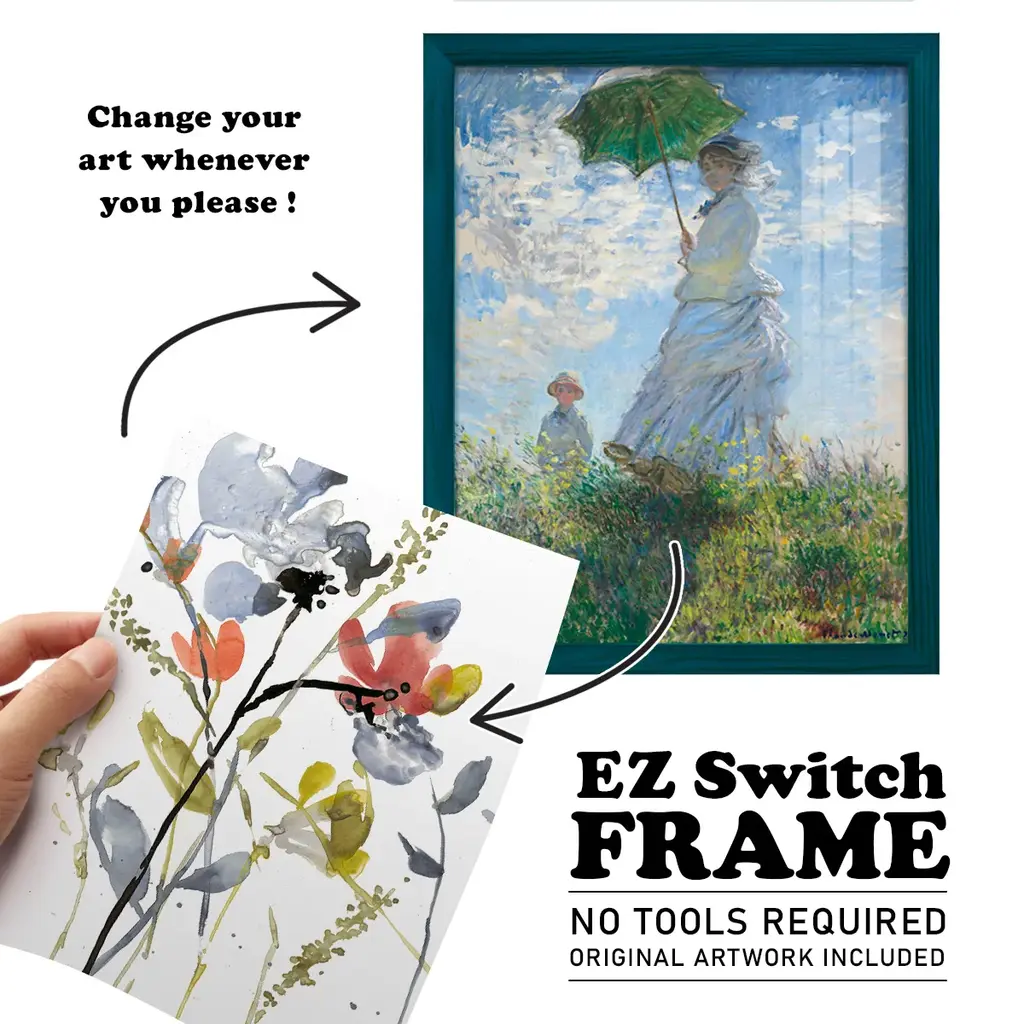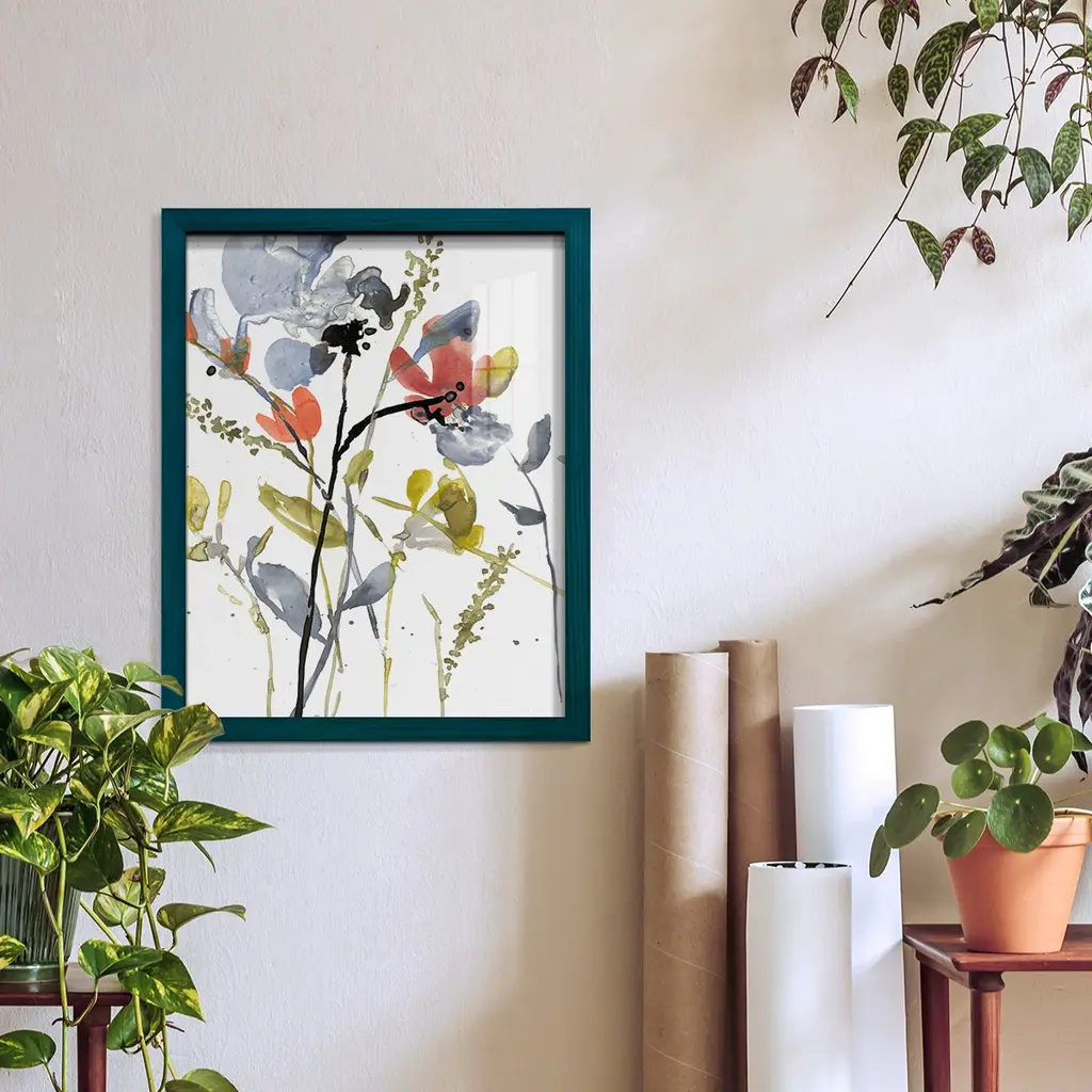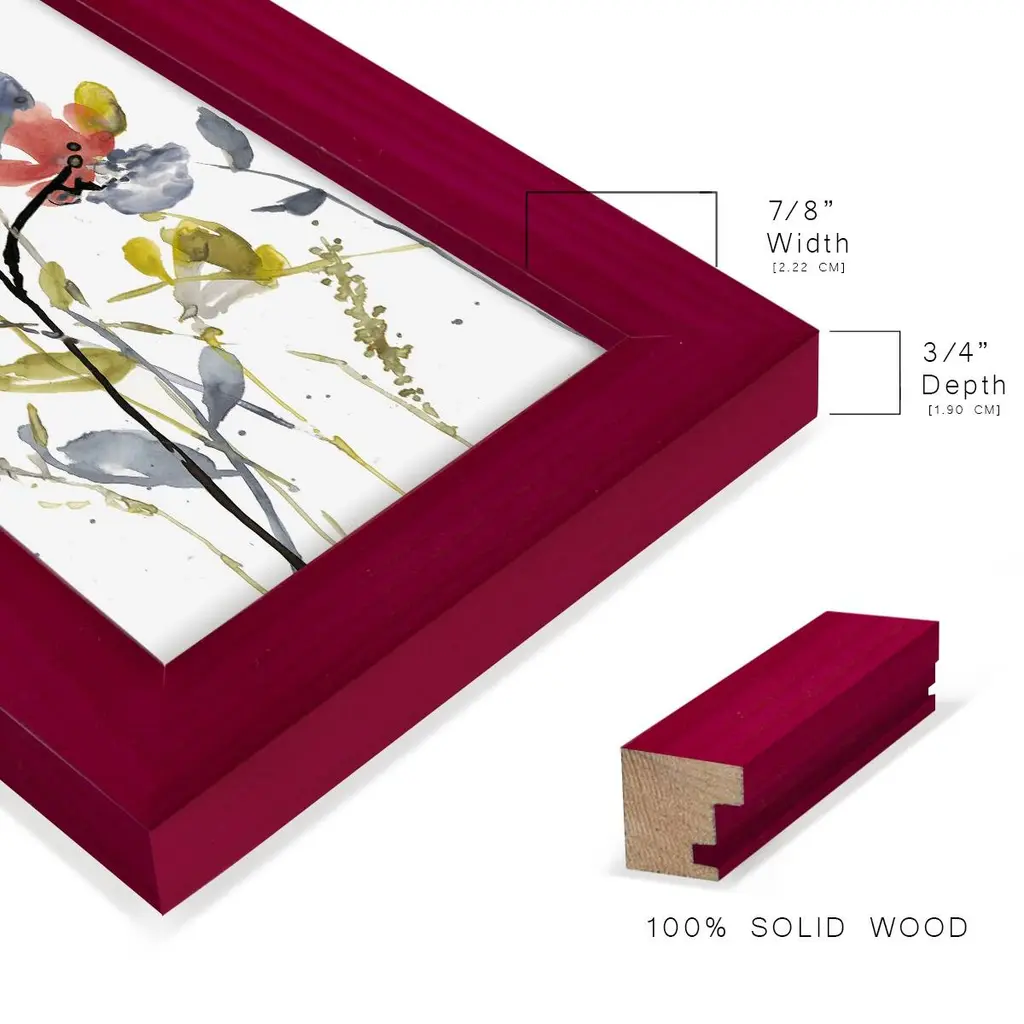 Flower Overlay II -EZ SWITCH Framed Print w/glass-Cherry Red A delightful, framed print. Featuring a solid wood frame with real wood glass. This premium print is giclee quality. In addition, every frame features a removable back and table top stand. This allows you to change your art in the future or to just stand the art on a table for a new look. We are sure you'll enjoy our new series of EZ SWITCH Framed Art. Solid Wood Frame Real Glass Removable / Replaceable Art Built in Tabletop Stand Sizes range from 4x6 up to 12x15 - buy just one or pair them up as sets as you see fit.