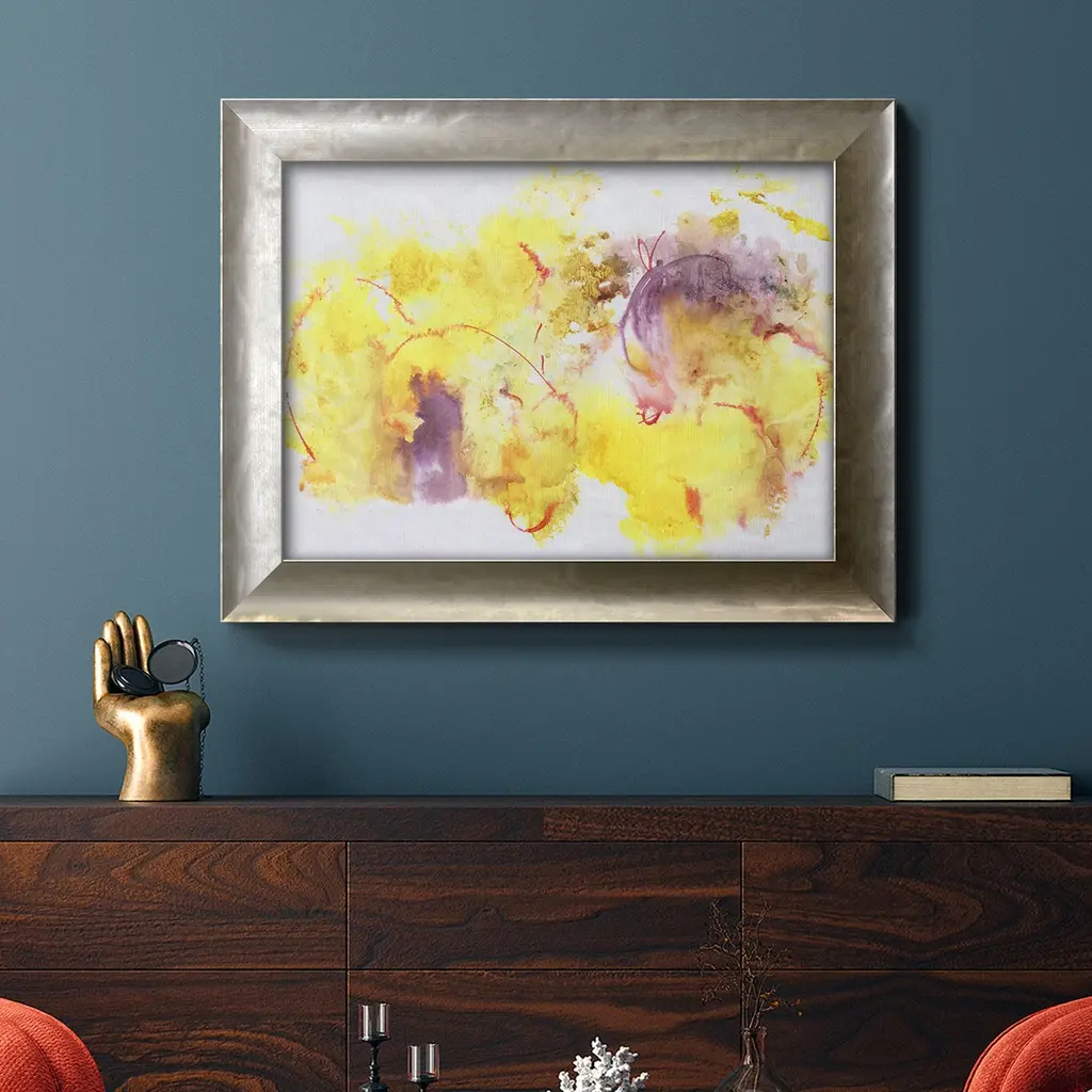 Flower Song II Premium Framed Canvas- Ready to Hang A Premium Framed Canvas created to last. Framed in distressed wood and available in an array of sizes and colors Featuring a beveled a solid wood stretcher bar, each piece comes ready to hand 3 SIZES AVAILABLE 16''X20'' - Overall Size 18'X27'' - Overall Size 24''x36'' - Overall Size Each piece is made to order. Each piece comes with hanging hardware. Made in the USA Ready to Hang Giclee Paper Print Acrylic Glass Beveled Matt Board