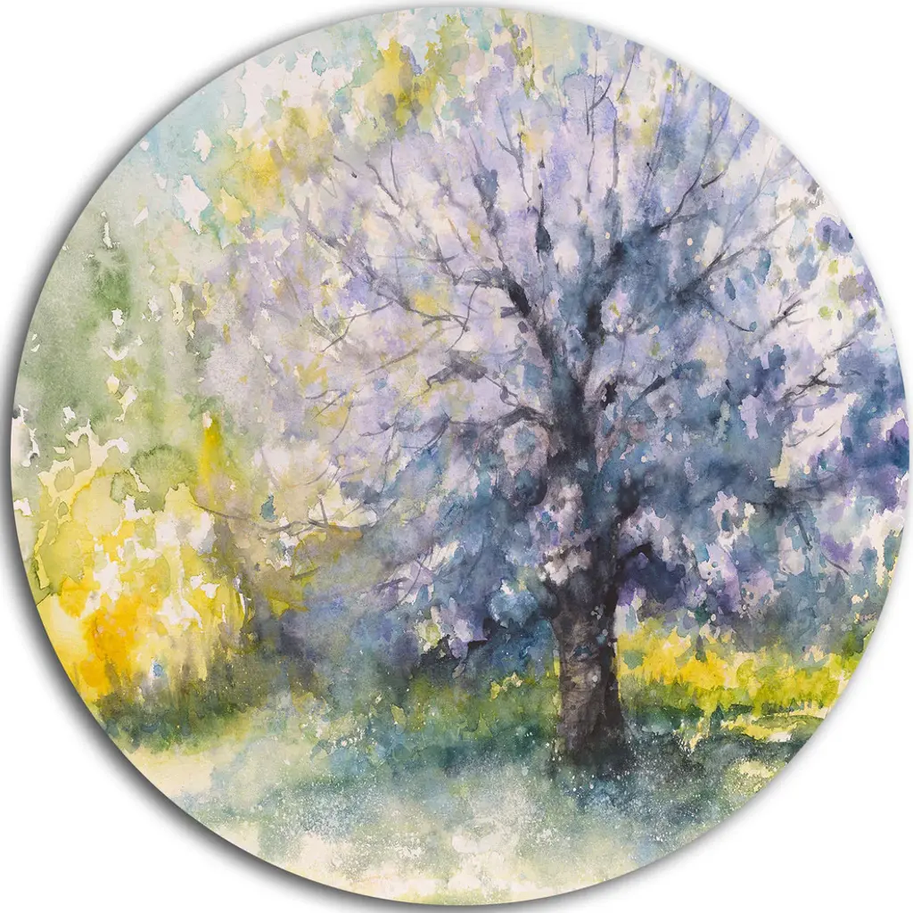 Bring Contemporary Abstraction to your home with this large Circle Metal wall art. This Flowering Trees Over River Metal Artwork makes it the focal point of any room or office. - White Gloss Coating ensures colors are extra vibrant with light reflection.- Aluminum grade Sheet Metal with 1 inch mounting frame on the back giving the illusion that the artwork is floating on the wall..- Mounting Brackets are included along with instructions.- High Quality Digital images are created directly into a glossy aluminum panel producing a stunning and captivating print into the glossy finish of the metal.- Water, Fire and Scratch resistant HD Aluminum panels.- Looks better than any photo paper and guaranteed to last at least 20 years- Easy to clean with a microfiber cloth. Colors are far superior to regular Canvas Art. - Easy to Hang