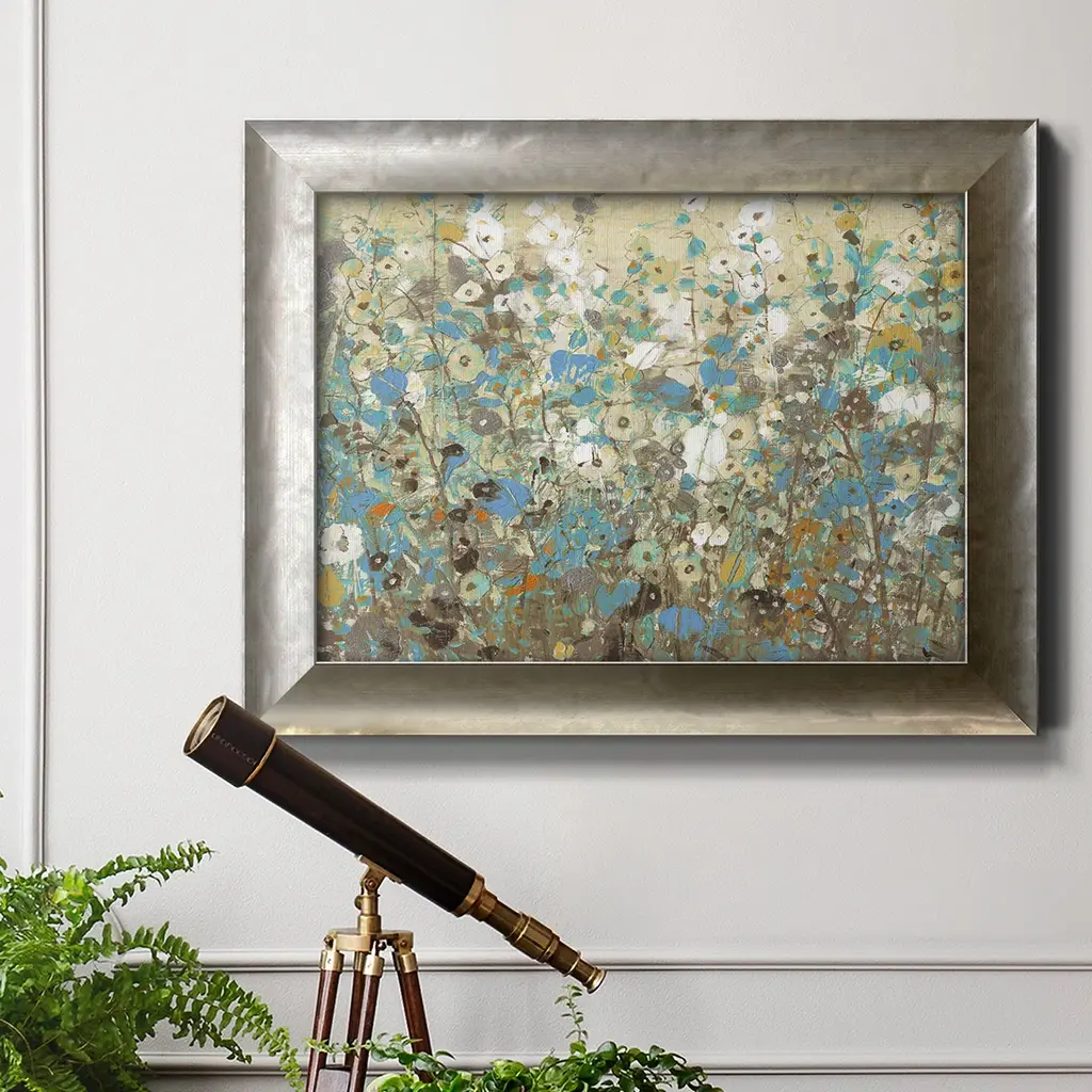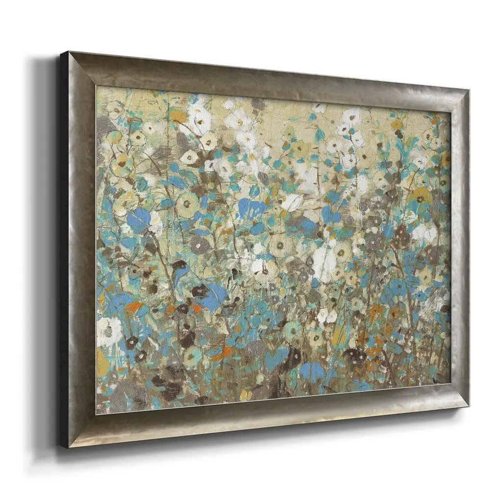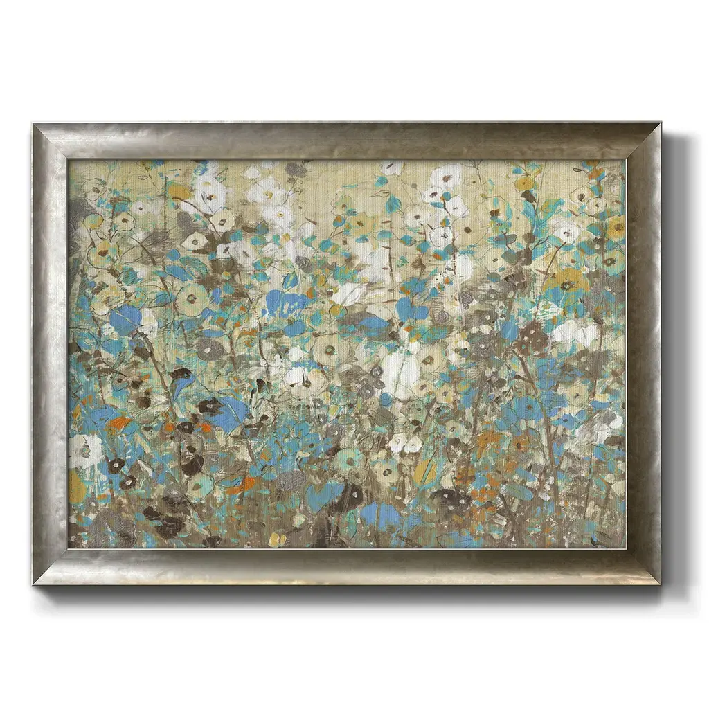 Flowering Vines I Premium Framed Canvas- Ready to Hang A Premium Framed Canvas created to last. Framed in distressed wood and available in an array of sizes and colors Featuring a beveled a solid wood stretcher bar, each piece comes ready to hand 3 SIZES AVAILABLE 16''X20'' - Overall Size 18'X27'' - Overall Size 24''x36'' - Overall Size Each piece is made to order. Each piece comes with hanging hardware. Made in the USA Ready to Hang Giclee Paper Print Acrylic Glass Beveled Matt Board