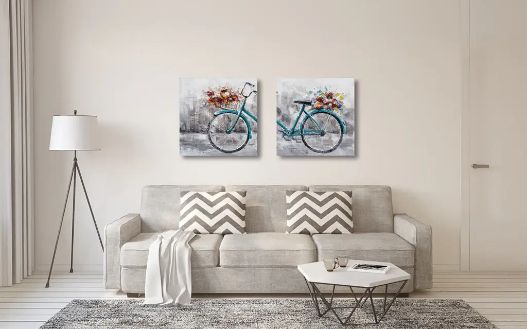 Comes at a set togetherHand-painted:100% hand-painted high quality oil paintings by professional artist. As each painting is 100% hand-painted, actual paintings may be slightly different from the product image due to different brand of monitors.Painting Size: 30x60 inches; Interior solid wood frame: more sturdy and durable. Well packed in carton box. A great gift idea for your relatives and friendsA perfect wall decoration oil paintings for living room, bedroom, kitchen, office, dinning room, bathroom, bar, and more!