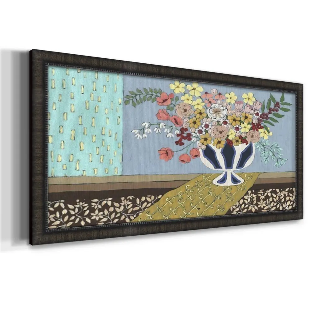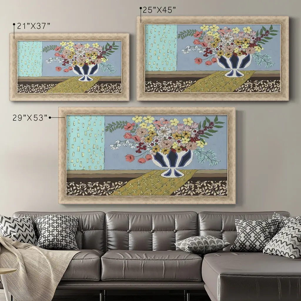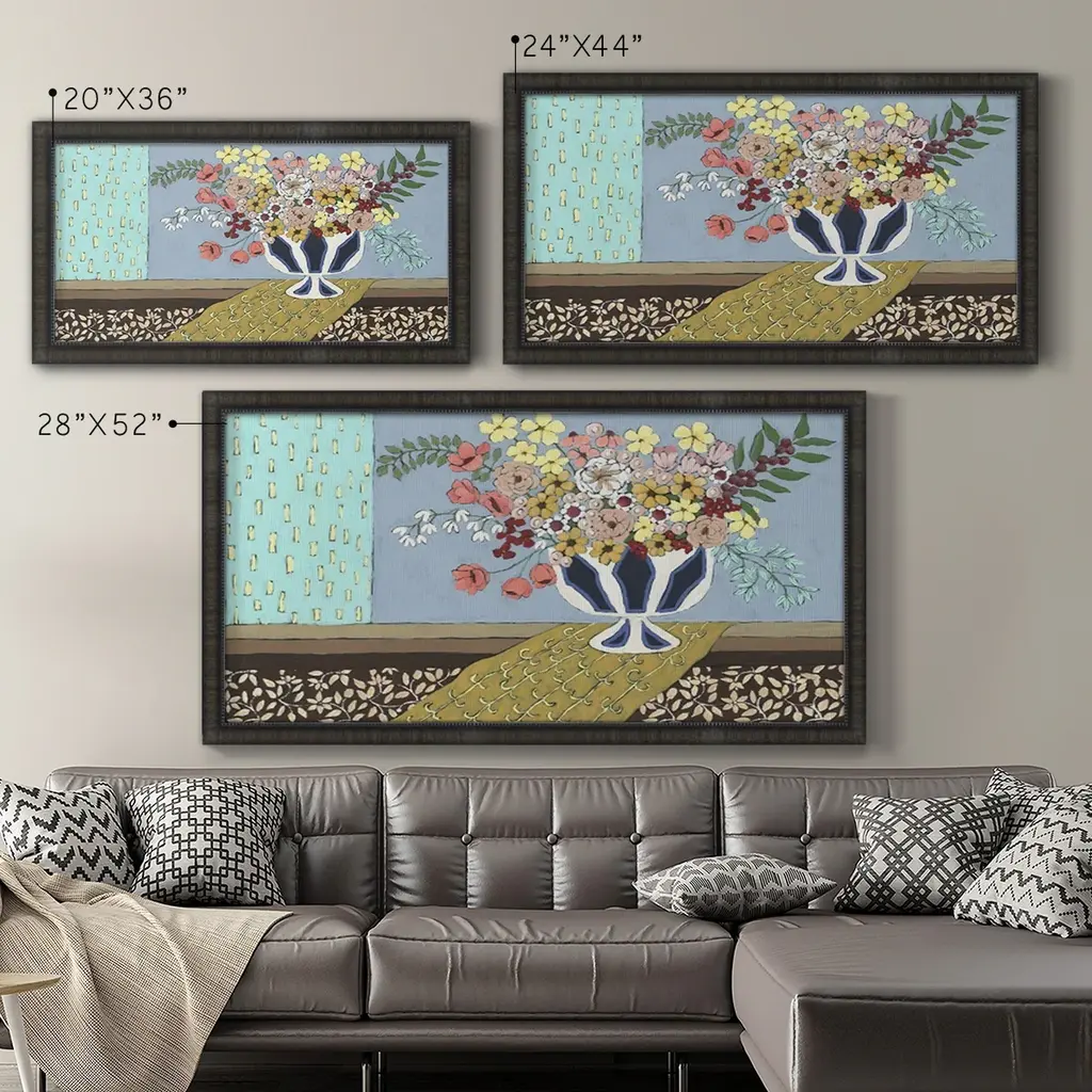Flowers Blooming Premium Framed Canvas- Ready to Hang A Premium Framed Canvas created to last. Framed in distressed wood and available in an array of sizes and colors Featuring a beveled a solid wood stretcher bar, each piece comes ready to hand 3 SIZES AVAILABLE 21''X37'' - Overall Size 25''X45'' - Overall Size 29''x53'' - Overall Size Each piece is made to order. Each piece comes with hanging hardware. Made in the USA Ready to Hang Giclee Paper Print Acrylic Glass Beveled Matt Board