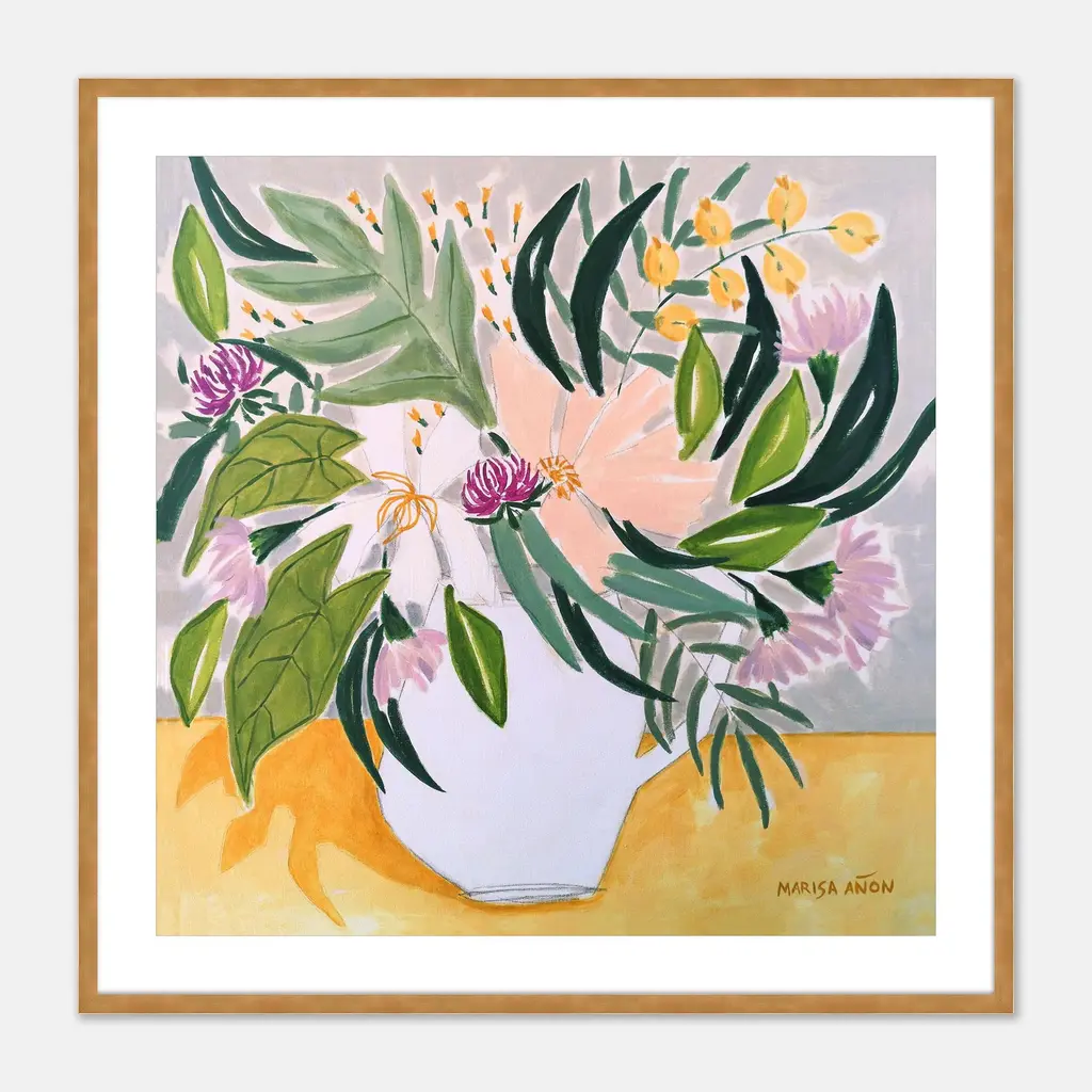 DESCRIPTION: Flowers from Chelva by Marisa Anon in Gold Frame, XS Art Print SPECIFICATIONS: Type: Framed Paper. Framed Size (in): 16x16. Orientation: Square. Flush/Float/Matted: Matte. Frame Color: Gold. Hanging Hardware: Picture Perfect. FRAMING: Each art work arrives framed and ready to hang. We use handmade frames with a plexiglass glazing front, because it offers less glare than standard glass. At this time, we only offer framed prints. ARTIST BIO: Marisa Anon is inspired by light, nature, the colours and reflections of the sea and the delicious light of the sunny Mediterranean coast, her home and birthplace. She likes to bring that outdoor light inside her studio, to experiment with the colors and shapes, the shadows and the light. Marisa trained as a Fine Art Conservator and holds a Bachelor of Arts Degree. Her extensive and intimate experience working with classical painting served to heighten her sensitivity to aesthetics, sense of pictorial lushness and harmony of color. Marisa is passionate about her paintings and spends every day in her studio, doing what she loves. A keen and experienced traveler herself, she is delighted that her paintings are collected by art lovers all over the world.
