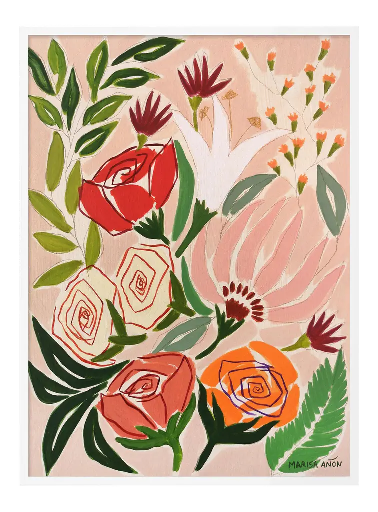 DESCRIPTION: Flowers from Ganda by Marisa Anon in Gold Frame, Medium Art Print SPECIFICATIONS: Type: Framed Paper. Framed Size (in): 28x36. Orientation: Vertical. Flush/Float/Matted: Matte. Frame Color: Gold. Hanging Hardware: Picture Perfect. FRAMING: Each art work arrives framed and ready to hang. We use handmade frames with a plexiglass glazing front, because it offers less glare than standard glass. At this time, we only offer framed prints. ARTIST BIO: Marisa Anon is inspired by light, nature, the colours and reflections of the sea and the delicious light of the sunny Mediterranean coast, her home and birthplace. She likes to bring that outdoor light inside her studio, to experiment with the colors and shapes, the shadows and the light. Marisa trained as a Fine Art Conservator and holds a Bachelor of Arts Degree. Her extensive and intimate experience working with classical painting served to heighten her sensitivity to aesthetics, sense of pictorial lushness and harmony of color. Marisa is passionate about her paintings and spends every day in her studio, doing what she loves. A keen and experienced traveler herself, she is delighted that her paintings are collected by art lovers all over the world.