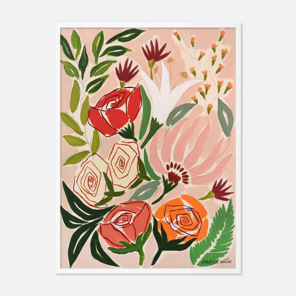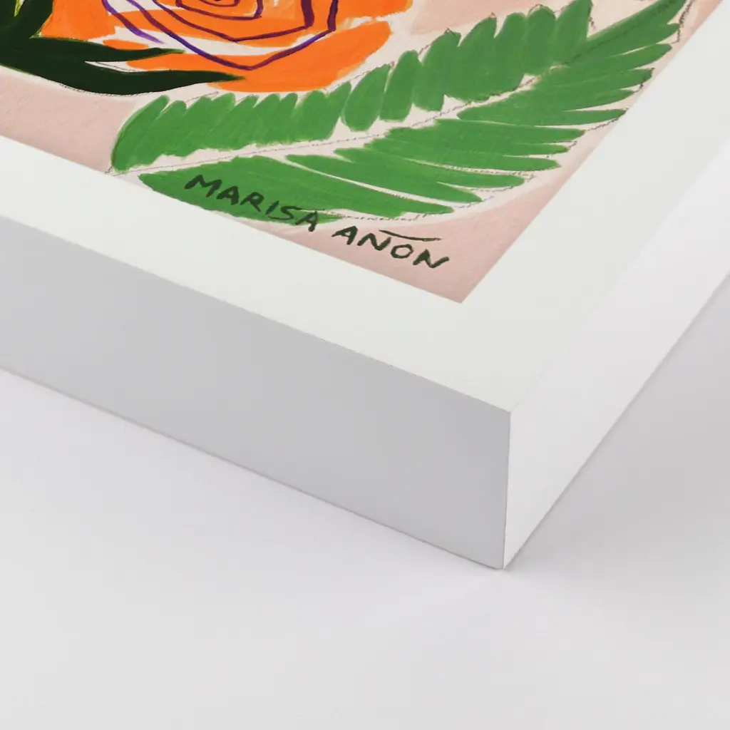 DESCRIPTION: Flowers from Ganda by Marisa Anon in White Frame, Small Art Print SPECIFICATIONS: Type: Framed Paper. Framed Size (in): 18x24. Orientation: Vertical. Flush/Float/Matted: Flush. Frame Color: White. Hanging Hardware: Picture Perfect. FRAMING: Each art work arrives framed and ready to hang. We use handmade frames with a plexiglass glazing front, because it offers less glare than standard glass. At this time, we only offer framed prints. ARTIST BIO: Marisa Anon is inspired by light, nature, the colours and reflections of the sea and the delicious light of the sunny Mediterranean coast, her home and birthplace. She likes to bring that outdoor light inside her studio, to experiment with the colors and shapes, the shadows and the light. Marisa trained as a Fine Art Conservator and holds a Bachelor of Arts Degree. Her extensive and intimate experience working with classical painting served to heighten her sensitivity to aesthetics, sense of pictorial lushness and harmony of color. Marisa is passionate about her paintings and spends every day in her studio, doing what she loves. A keen and experienced traveler herself, she is delighted that her paintings are collected by art lovers all over the world.