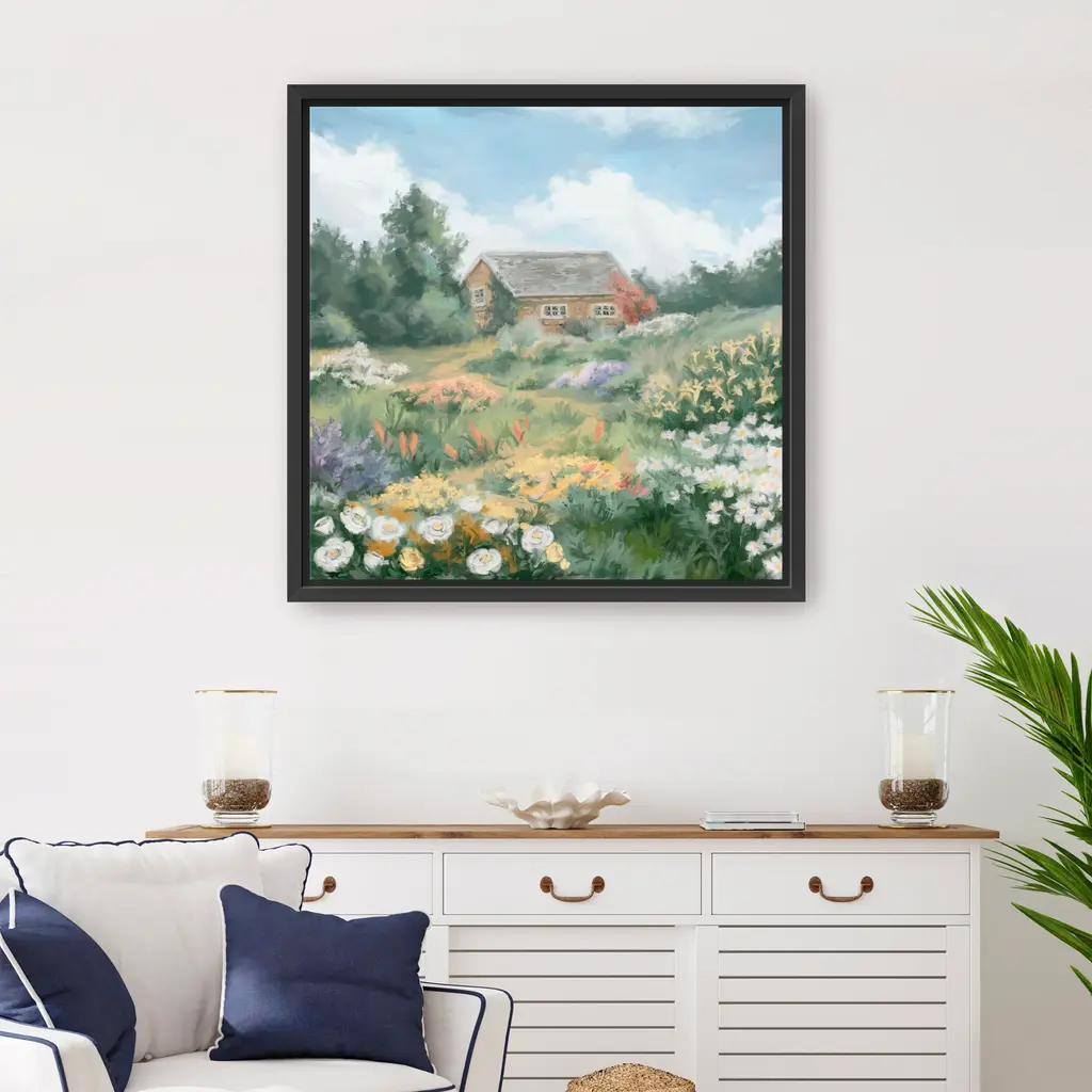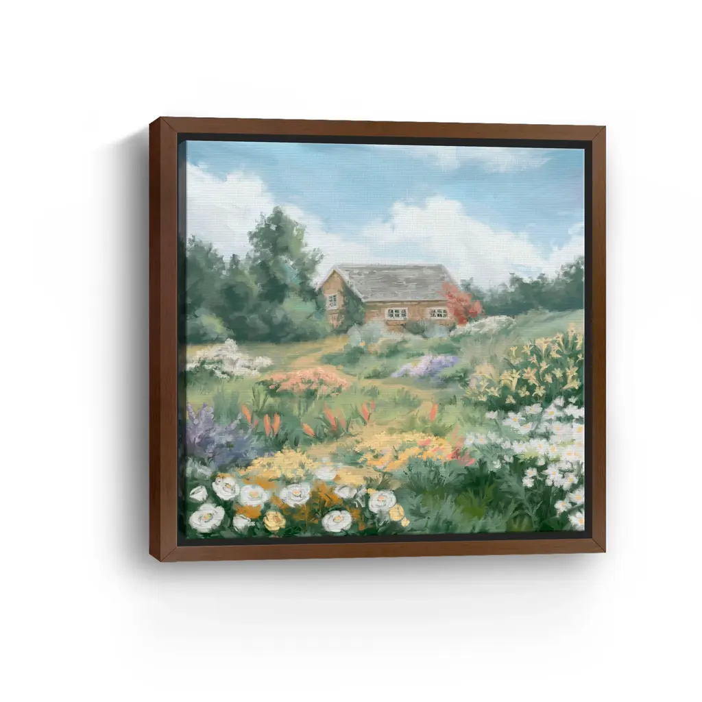 Flowers Garden Tiny House Canvas Giclee Wall Art - Framed / Walnut / 30x30