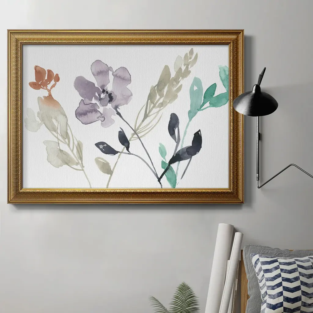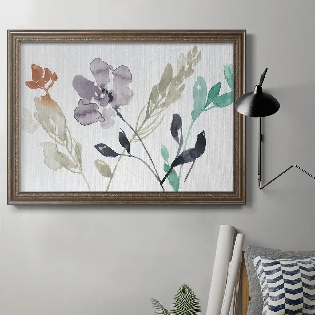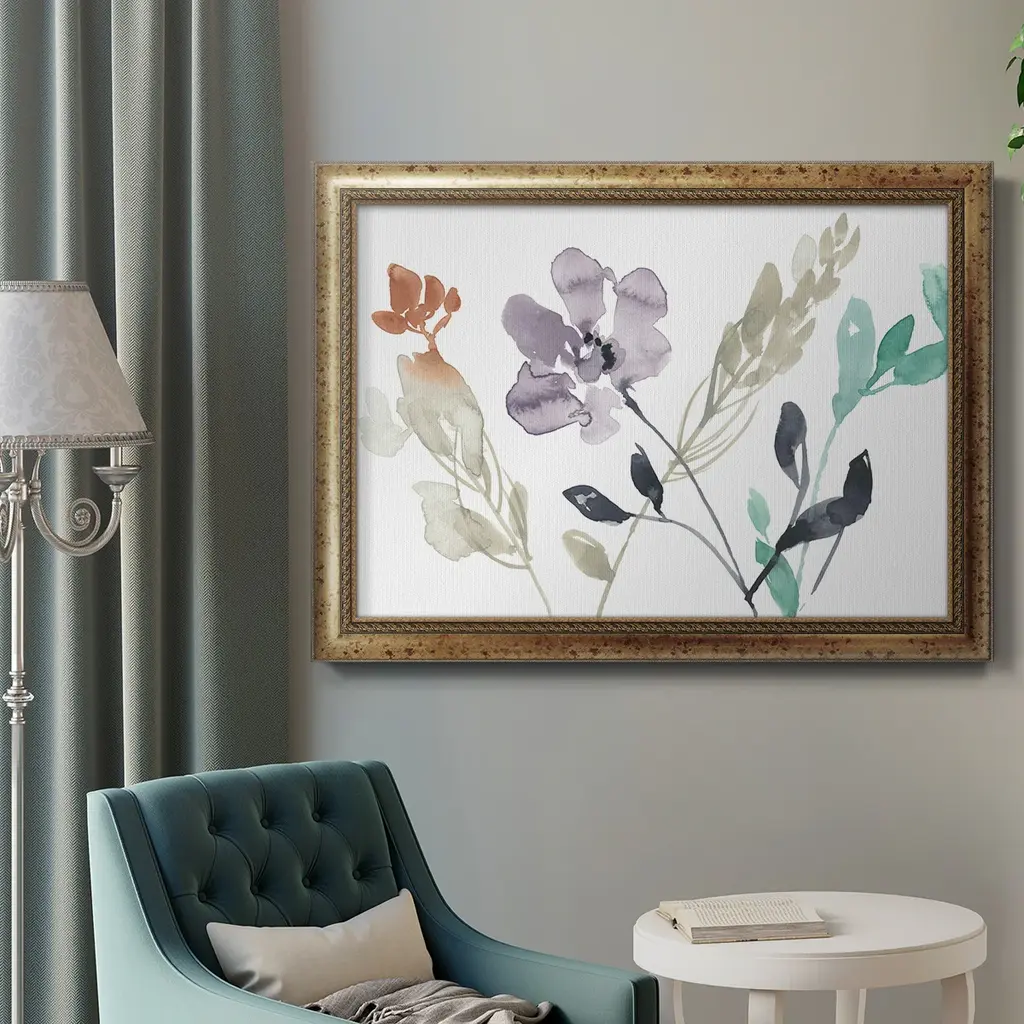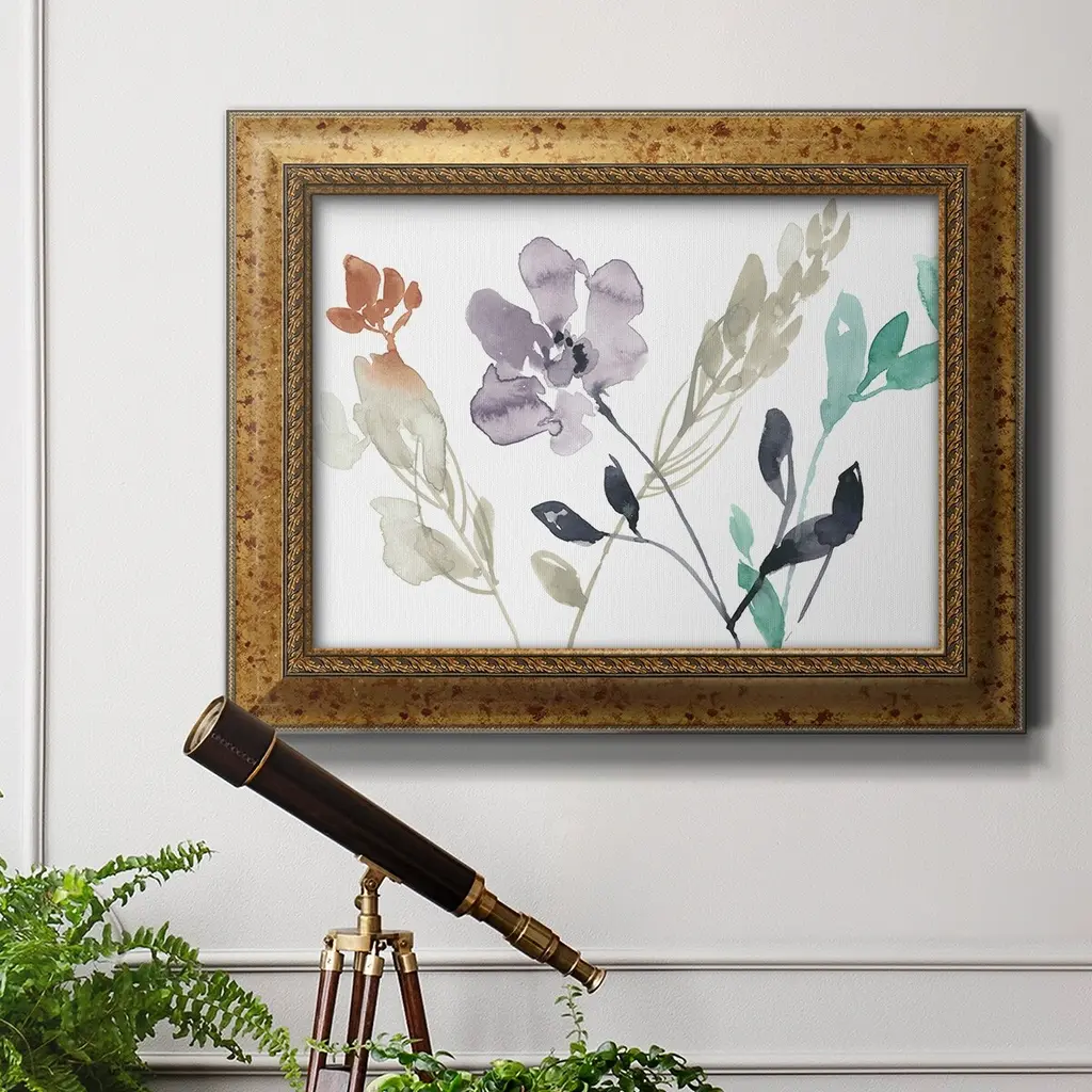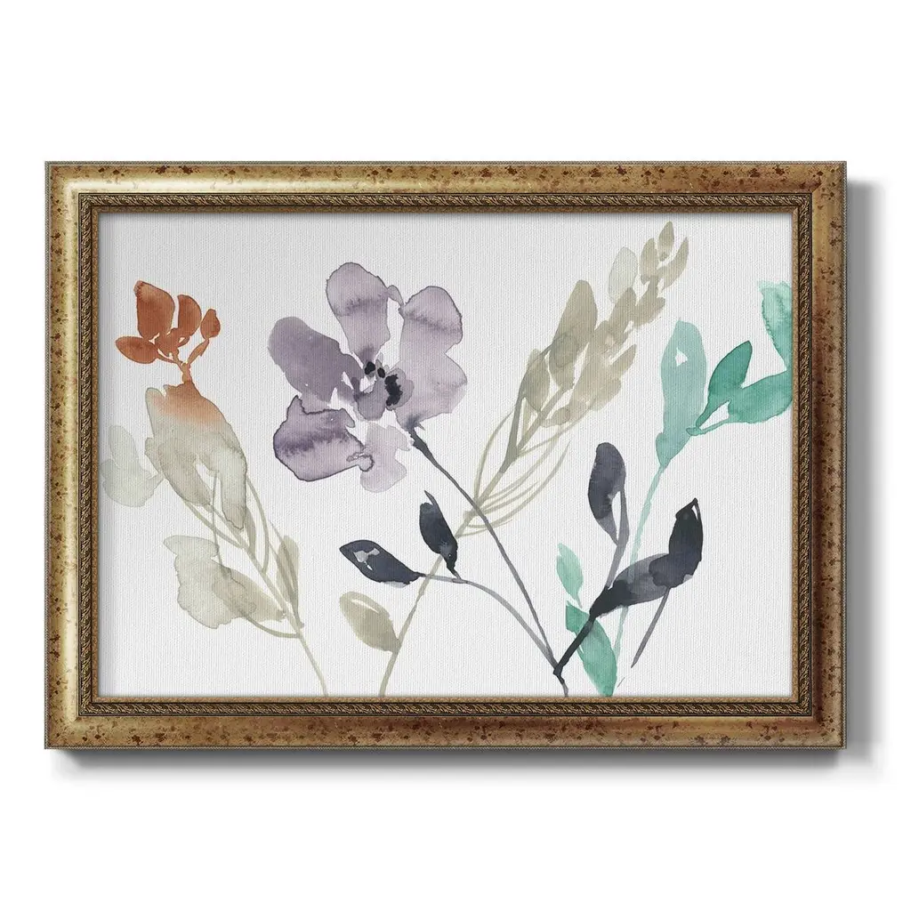 Flowers in Fall I Premium Framed Canvas- Ready to Hang A Premium Framed Canvas created to last. Framed in distressed wood and available in an array of sizes and colors Featuring a beveled a solid wood stretcher bar, each piece comes ready to hand 3 SIZES AVAILABLE 16''X20'' - Overall Size 18'X27'' - Overall Size 24''x36'' - Overall Size Each piece is made to order. Each piece comes with hanging hardware. Made in the USA Ready to Hang Giclee Paper Print Acrylic Glass Beveled Matt Board